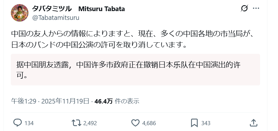 限韩令解除了,限日令来了说很多地方取消日本乐队的商演许可了