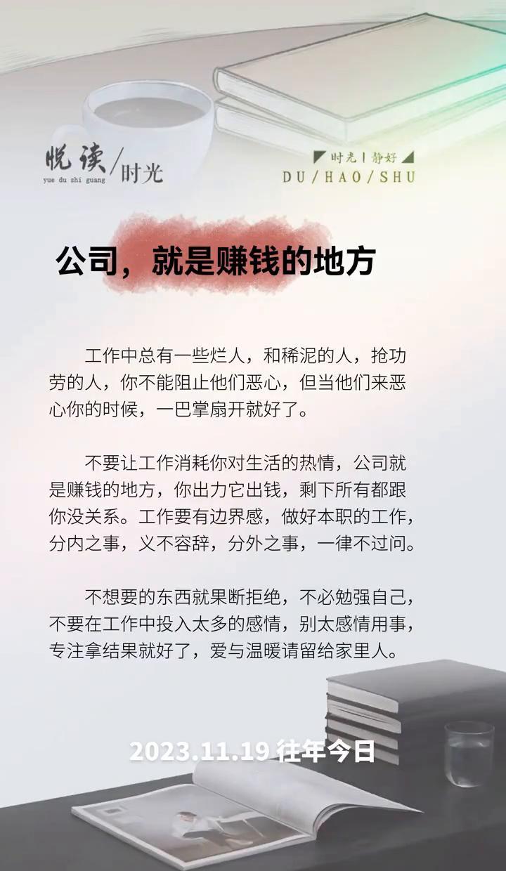 你干的活儿,公司给钱;你多干的,别指望有回报。 别把老板当兄弟,也别把同事当朋友。 职场不是家,没那么多情义。 工作边界不是画地为牢,是保护自己。 78%的人知道该设限,却只有36%能做到。 你以为你拼命,人家看的是结果,不是你有多拼。 别总想着“我为你多做一点”, 你越卷,别人越觉得你该干更多。 别把情绪带进办公室, 真感情留着给家人,别浪费在没结果的人身上。 边界感强的人,活得清醒,走得稳。 别做那个“好说话”的傻子, 谁跟你讲情义,谁就占你便宜。 想清楚:你是来干活的,不是来演戏的。 守住自己的节奏,别被卷进无意义的消耗里。 职场上,聪明人从不靠感情维系关系。 你越专业,越懂得收放自如。