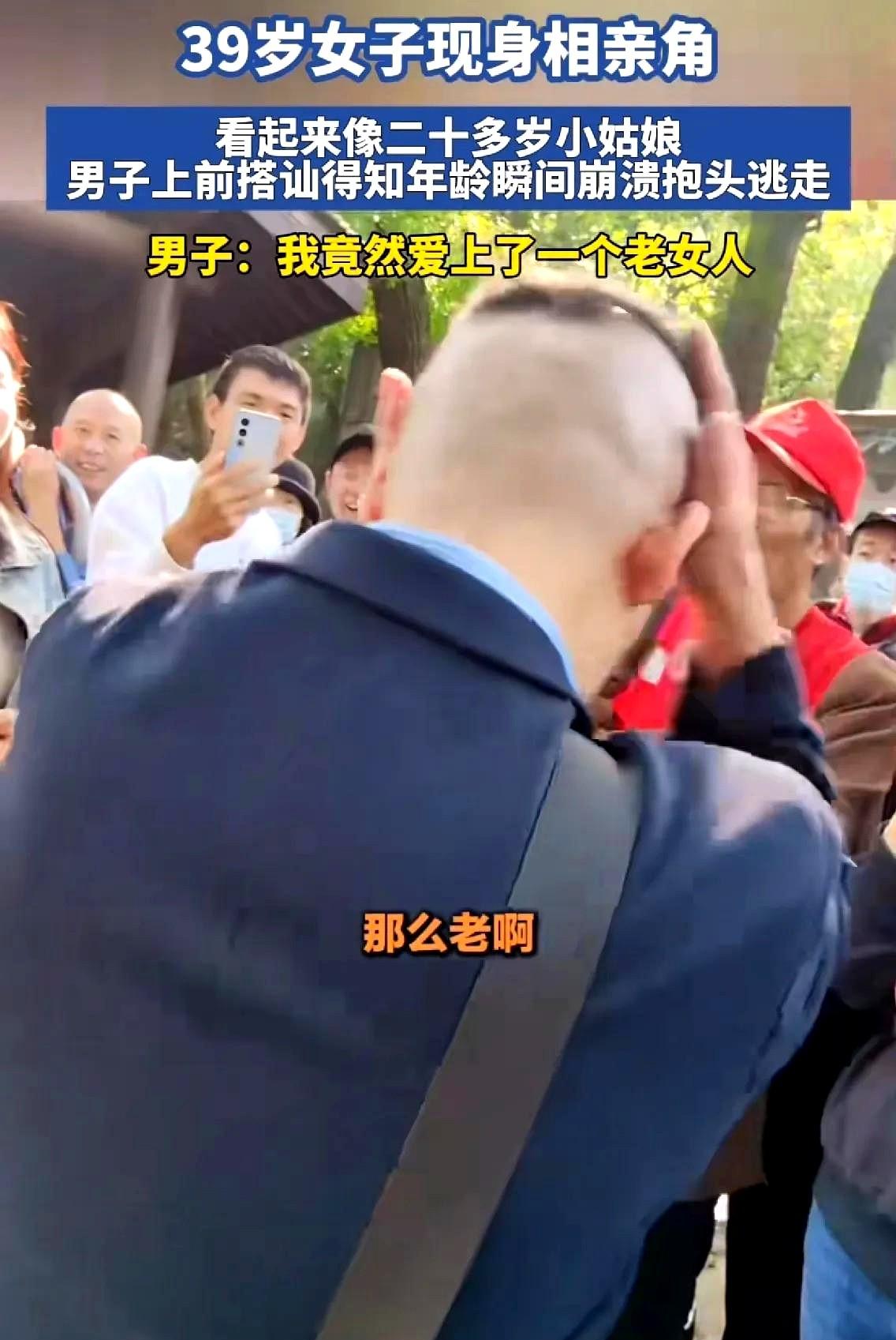 在一个相亲角,一位39岁女子在和一个男子交流。 开始男子还挺感兴趣,当他听到女人口中说出自己三十九岁的时候,情绪瞬间崩溃。 男子用哀嚎的声音说:这么老啊? 我竟然爱上了一个老女人。 好女人从不担心年龄问题,就算80岁了,也会有白马王子爱上的。 这男的这样子,人家真有20多岁,一句话都不会和他多说。 猜测这女的没有39,年纪应该不太大,就是某个想出名的小网红策划个大龄女的年龄话题,出圈出名。 看什么时候开始直播吧。 什么肌肤像二十来岁?等妆一卸,你不大喊一声,鬼呀,我就服你!