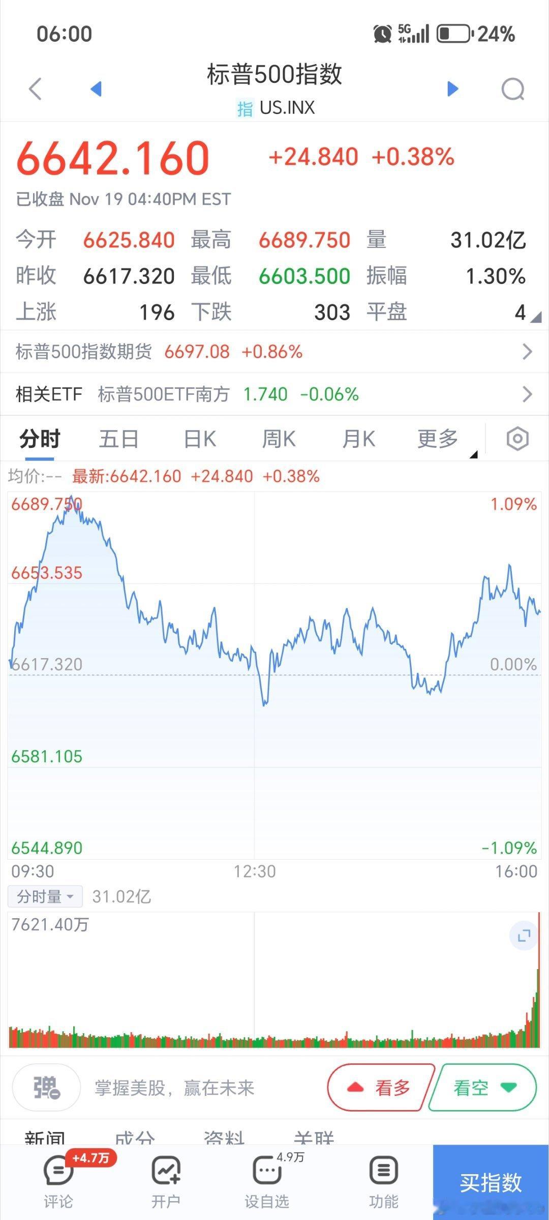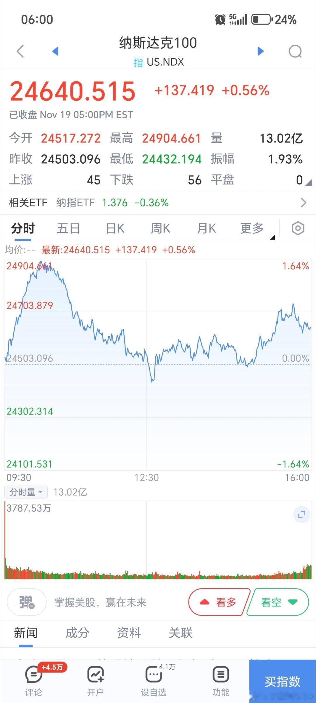早上好,家人们起床啦,有空点赞互动,就当养铁粉/金粉/钻粉。美股小红,黄金小跌,A股期货一般般,盘后英伟达财报不错,都拉起来了,今天应该是反弹的一天标普500:+0.38纳指100:+0.56生物科技:-0.92油气:-1.21原油:-2.09