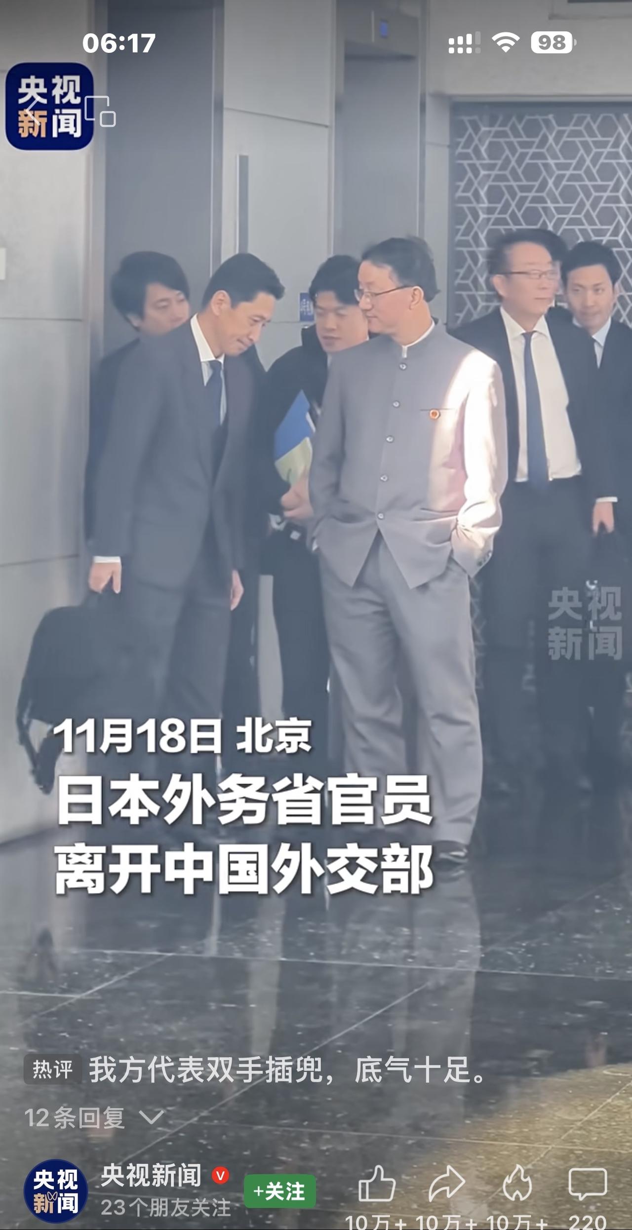日方称,中方媒体“玉渊谭天”未协调即发布“日本官员低头听中方讲话”的视频,日方已