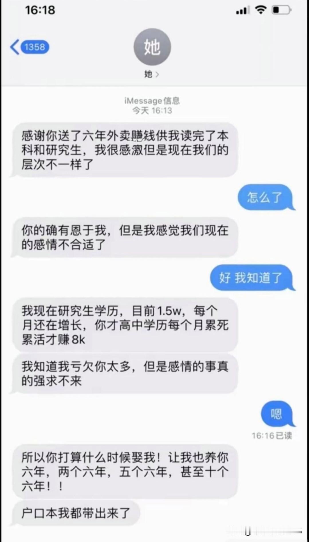 搭伙过日子,还是一个人过生活好? 如果只看前面的剧本,感觉一切都还正常、符合当下的婚恋生态;可当最后一句反转出现时,才知道:原来他们俩在说童话!
