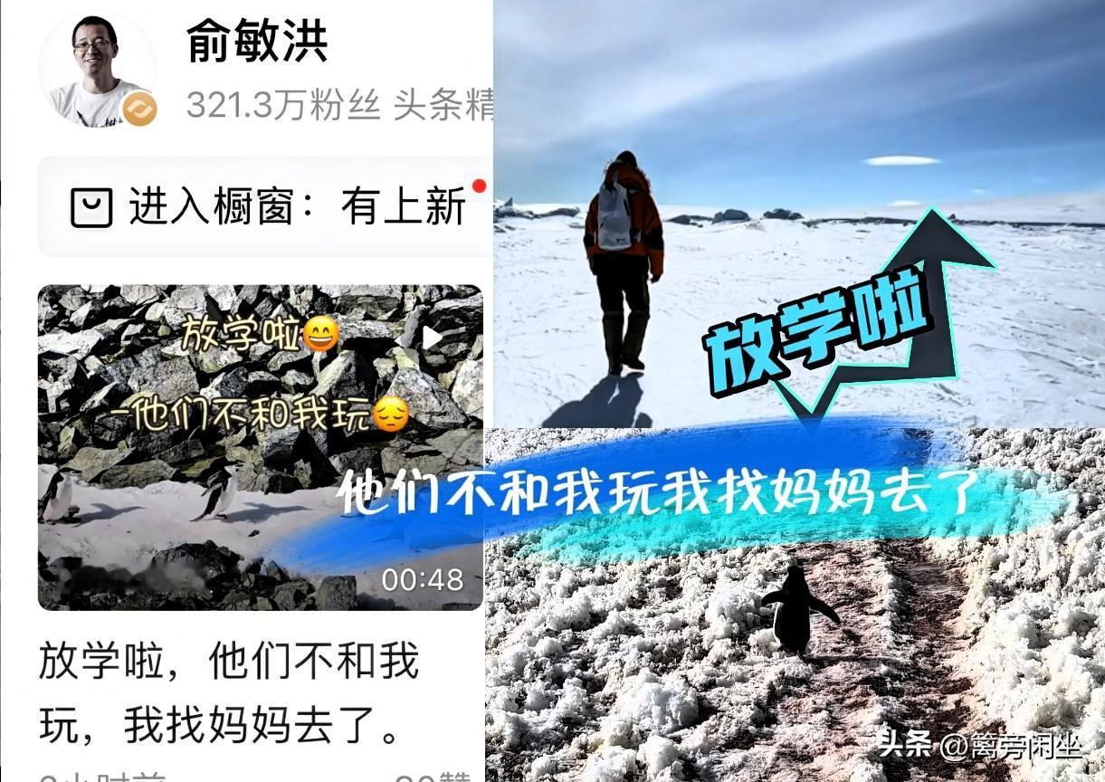 俞敏洪:放学啦,他们不和我玩,我去找妈妈去 俞敏洪发布新动态,视频开头,南极的冰天雪地里有几只半黑半白的小企鹅,他刻意拍了一只落单的小企鹅,摇摇晃晃孤单的背影,在无垠雪地上格外显眼,在黑白分明的世界里,小企鹅每一步都踏出格格不入的孤单。身前是望不到边的茫茫雪原,身后是渐行渐远的同伴身影——这被遗弃在天地间的渺小身影,把被孤立的滋味,凝成了最刺骨的寒。 俞敏洪给小企鹅的视频配文,“放学啦,他们不和我玩,我去找妈妈了”。 俞敏洪