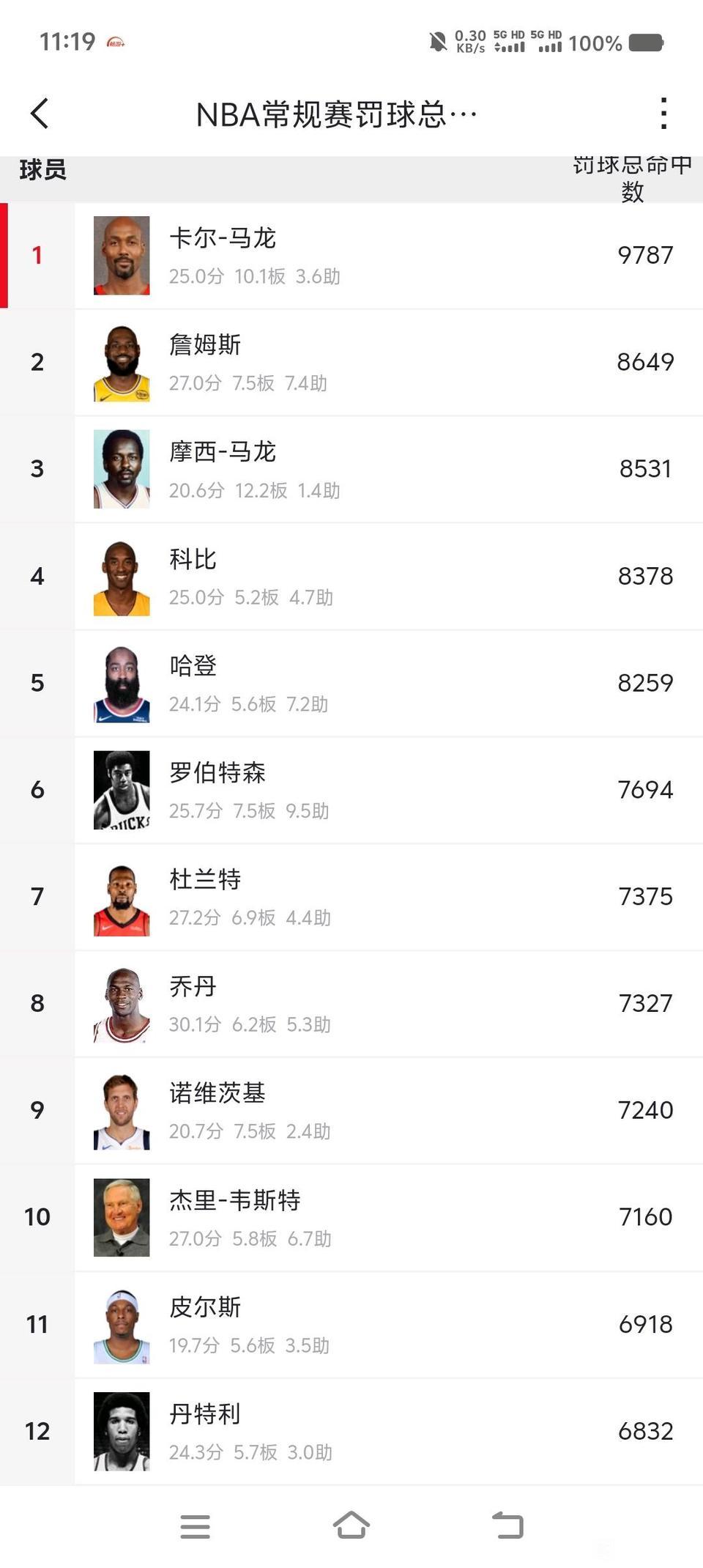 阿强去掉打替补赛季,这罚球也是很离谱啊。哈登才打十五个赛季有这么多罚球更离谱。。真是两个一分王