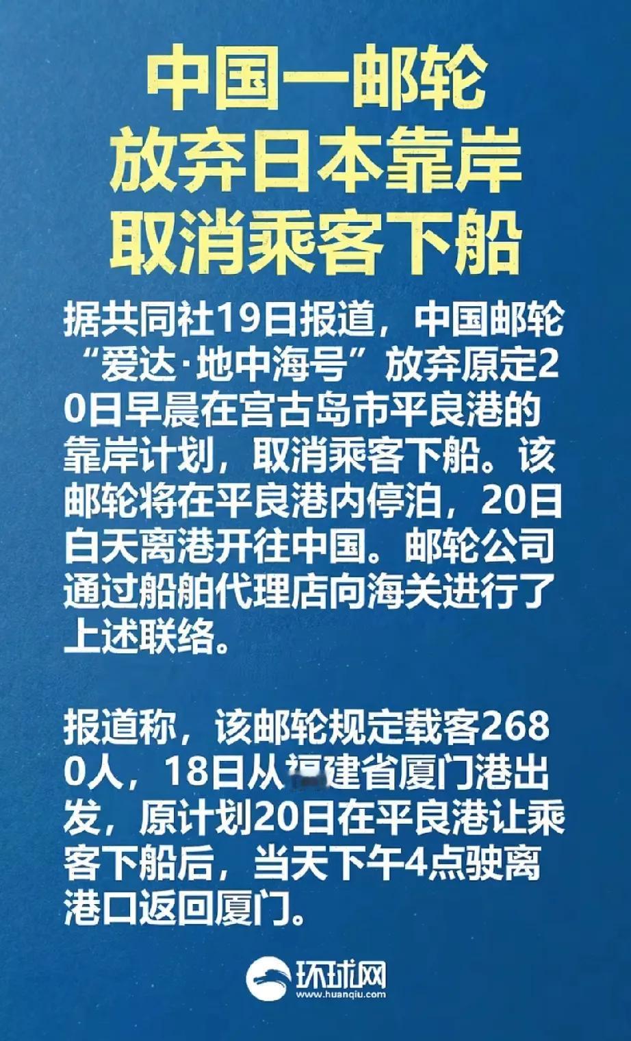 好样的,这个必须点赞! 中国一邮轮放弃日本港口靠岸,取消乘客下船。 有网友说:笆篱扎的紧,野狗钻不进。国人应团结起来。 值班点赞并支持他们的做法,关键时候要以国家利益为重,要挺起民族脊梁,要有大格局,与祖国同呼吸共命运。 爱国不是停留在嘴上,也不是一句口号,而是实实在在的行动,这是对一个人到底爱不爱国的一次考验。 坚决支持国家的一切立场,和国家利益保持高度一致。 厦门游轮比上海航班有骨气,比那个在机场说:我花自己的钱,政府管不了。 那些还执迷不悟在日本旅游的人,赶紧回国吧,那些想去日本旅游的人,就不要去了!我们普通人为国家做不了什么贡献,但要有做人的尊严!日本那么仇视中国,你为什么还要去给它送钱?! 对此你们怎么看呢?
