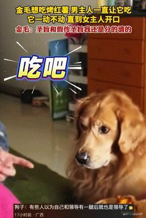 笑不活了!湖南,狗狗想吃桌子上的烤红薯,可是也不敢自己动手去拿只能盯着流口水。这时男主人看出了狗狗的心思,一直说让它吃,甚至都拿它嘴边了,但是它就是一动不动。直到女主人开口说:吃!它才大口吃了起来。网友:圣旨和假圣旨够够还是分得清的! 主人烤了几块红薯没有吃完,直接放桌子上了。当狗狗回到家后看到烤红时候,直接馋的流口水。可是这是一只有教养的狗狗,从不随便吃人类的东西。 要不都说狗狗的心思全部写在了脸上,一点没错。它就蹲那眼睛直勾勾的盯着红薯看。这时男主人看到狗狗的心思后,在一旁直接告诉它:吃,吃吧,你吃吧!狗狗听到口令后只是眼睛转了转。 但是还是不去吃,男主人觉得很奇怪,又对它说道:你怕啥呀,我喊你吃,你还不赶紧吃,吃,赶快吃吧!男主人说了得有十句吃,它还是不为所动,于是急脾气的男主人直接拿到了它的嘴边去诱惑它。 神奇的是它竟然只是看看,眼神都愣住了还是不吃。女主人在一旁实在是看不下去了,直接笑的肚子疼了。忍不住来了句:土豆,吃!它立马大口吃了起来。狗狗肯定特别生气男主人:你不知道你在家什么家庭地位吗?还不如我呢! 还一直让我吃,你不是害我的吗!我才不上你的当呢,哼!看狗狗那无辜的眼神,得亏是不会说话,要会说肯定会问男主人:这个家你做主吗?哈哈哈,太搞笑了,狗子也太精了,竟然能分的清楚在这个家谁是大小王! 对于这件事情,大家有什么看法? 信息来源:普陀潮