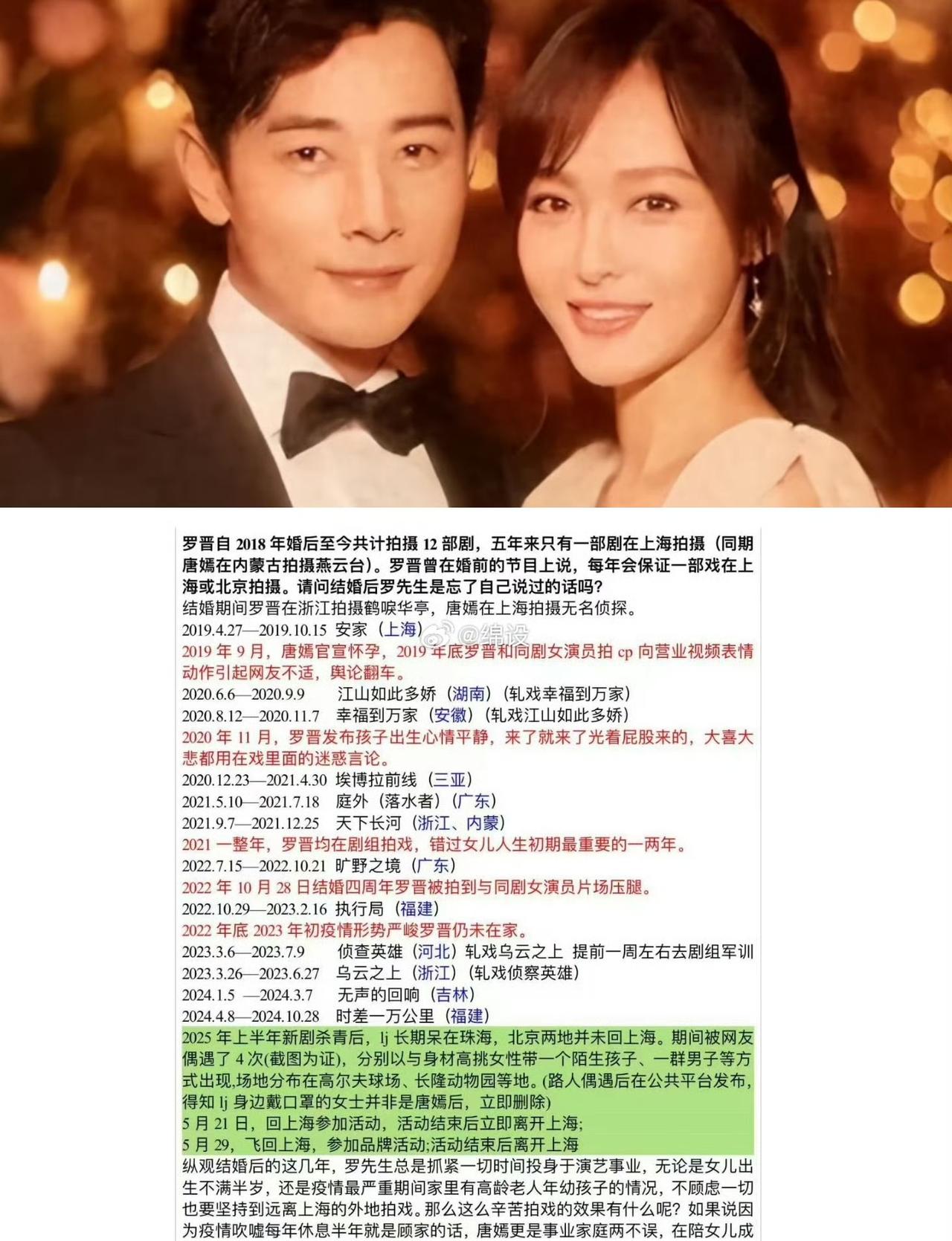 唐嫣和罗晋这瓜,越吃越懵圈😂! 最近刷到唐嫣和罗晋婚变的瓜,真的越看越糊涂,咱普通人唠两句实在的! 本来他俩在我这儿,那可是内娱恩爱天花板啊!当年罗晋多会疼人,唐嫣怀孕他收工就冲回家,唐嫣拍草原戏他带娃去剧组,妥妥的好男人模板,谁看了不夸一句神仙爱情? 结果这两天风向全变了,说他俩疑似分居一年半的,说行程一南一北的,罗晋扎组拍戏不怎么回家,唐嫣在上海专心带娃,好久没同框过了。还有人扒他俩没商业绑定,罗晋生日唐嫣没送祝福,连采访里唐嫣都从盼陪伴变成说女性独立了,条条都像“实锤”。 但转头又有粉丝晒偶遇照,说在迪士尼见他俩带娃,还有联合新项目,说只是工作忙聚少离多。咱就是说,这反转来得比电视剧还快! 其实咱普通人也懂,演员这职业确实特殊,拍个戏仨月半年见不着面太正常了。而且唐嫣本身家境好,原生家庭宠着,自己又能挣钱,就算真有点啥,也不至于委屈自己。 咱也不瞎猜,毕竟没实锤,就是觉得有点懵——当年那么甜的一对,真能说散就散?还是说只是网友想多了,人家只是低调过日子? 反正咱普通人看个热闹就好,感情这事儿,冷暖自知。你们觉得这瓜是真的,还是纯纯误会啊?冬日生活打卡季唐嫣 罗晋 唐嫣夫妇 唐嫣 ​​​ 唐嫣 罗晋