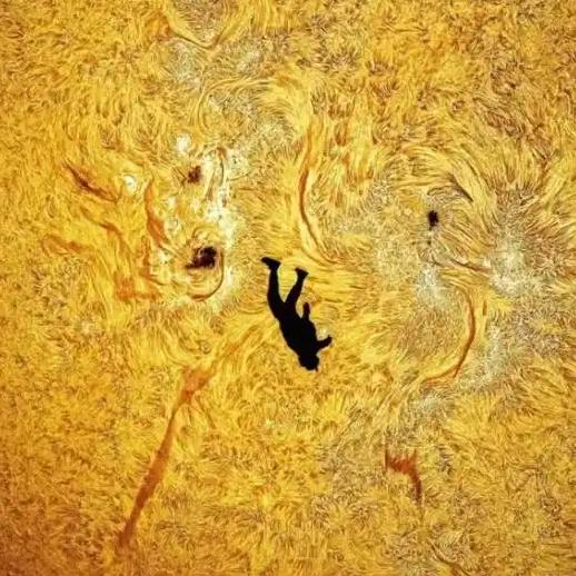 美国天文摄影师安德鲁·麦卡锡(Andrew McCarthy)与跳伞网红加布里埃尔·C·布朗(Gabriel C. Brown)联手,旨在捕捉极具视觉冲击力的瞬间,将跳伞运动与天文学的宏伟景观结合。 布朗从1070米(约3500英尺)高空自由落体,展现了极限运动的壮丽与危险。麦卡锡在距离跳伞点约2.4公里(约1.5英里)远的地点,利用专业望远镜捕捉到布朗在空中的剪影与太阳重叠的瞬间。这一瞬间的摄影不仅需要极高的技术水平,还要精确的时间同步。 确保望远镜捕捉到跳伞者与太阳重叠的精确瞬间。 在远距离使用望远镜进行高分辨率拍摄,避免震动影响画质。 在高速运动中捕捉清晰的影像,克服光线变化带来的难题。这张照片象征人类探索极限与自然力量的结合,类似伊卡洛斯追逐太阳的寓意,也彰显了现代科技在极限运动与天文摄影中的应用。