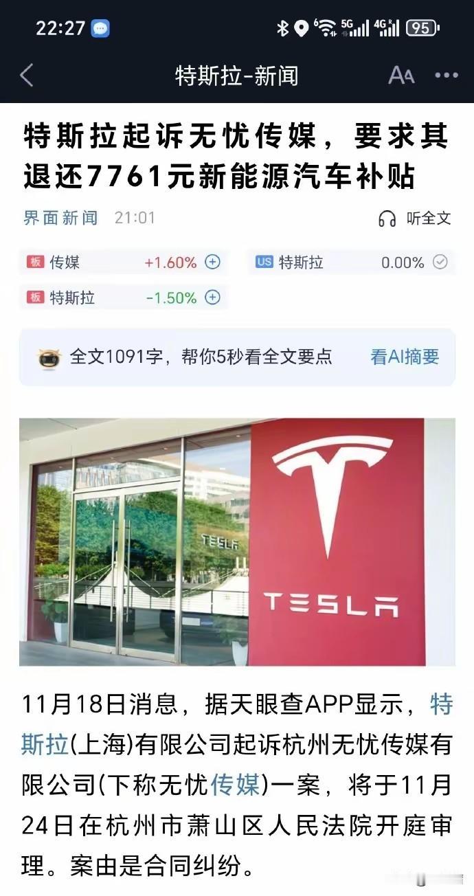 买车两年没跑够里程,就被特斯拉直接告上法庭?这波操作让30多家中国企业彻底懵了! 最近,无忧传媒突然收到法院传票,原告竟是特斯拉。 原来2022年公司买特斯拉时,车企垫付了7761元国家补贴,合同约定两年内要跑满2万公里,结果没达标,特斯拉没拿到补贴就直接起诉。不过这事儿没闹大,无忧传媒付款后,特斯拉已经撤诉了。 可无忧传媒只是个开始,过去四个月里,深圳、嘉兴、上海等多地30多家企业都遭了殃,被追讨的补贴从7000到15000元不等。 不少企业负责人说,买车时没细看几十页的合同,收到传票才知道有这个条款。 其实财政部早有规定,企业购车两年跑不够2万公里,补贴就得退回,特斯拉的诉求合法。 但它明明通过车机、短信提醒过里程,却跳过协商直接起诉,和国内品牌的处理方式差别挺大。 现在大多企业都选择和解,毕竟为几千块打官司不划算。