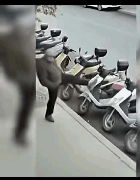 不作死就不会死。 一位老人, 看到路边摆放整整齐齐的电动车, 突然心生歹念, 无缘无故踢倒多辆电动机, 最后老人自己用力过猛, 一头栽倒在水泥路面, 不省人事。 这真是: 天欲其亡, 必令其狂。 老天要收拾你, 先让你疯狂。 也印证了那句古话: 善有善报, 恶有恶报, 不是不报, 时候未到。 时间一到, 一切都报。 图源自网络。鸣谢!
