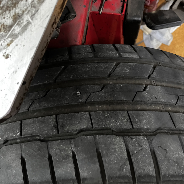 要不是胎压报警我都不带慌的 这轮胎扎钉应该有一段时间了,老板说钉子太短所以扎的不明显,漏气也慢,不过还是得补胎,胎内都渗水了