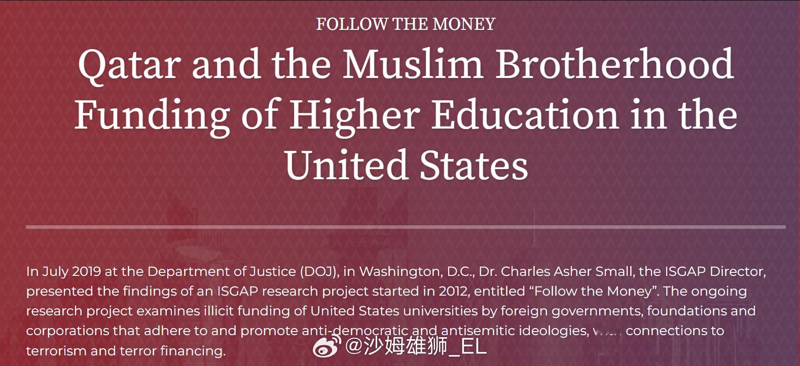美国“全球反犹主义与政策研究所”(ISGAP)发布综合报告称,卡塔尔和穆兄会制定了渗透西方政府和教育体系的“百年计划”,目前已经执行了50年,其目的是从内部瓦解西方资产阶级民主体系,并由此呼吁美国政府将穆兄会认定为“外国恐怖组织”。