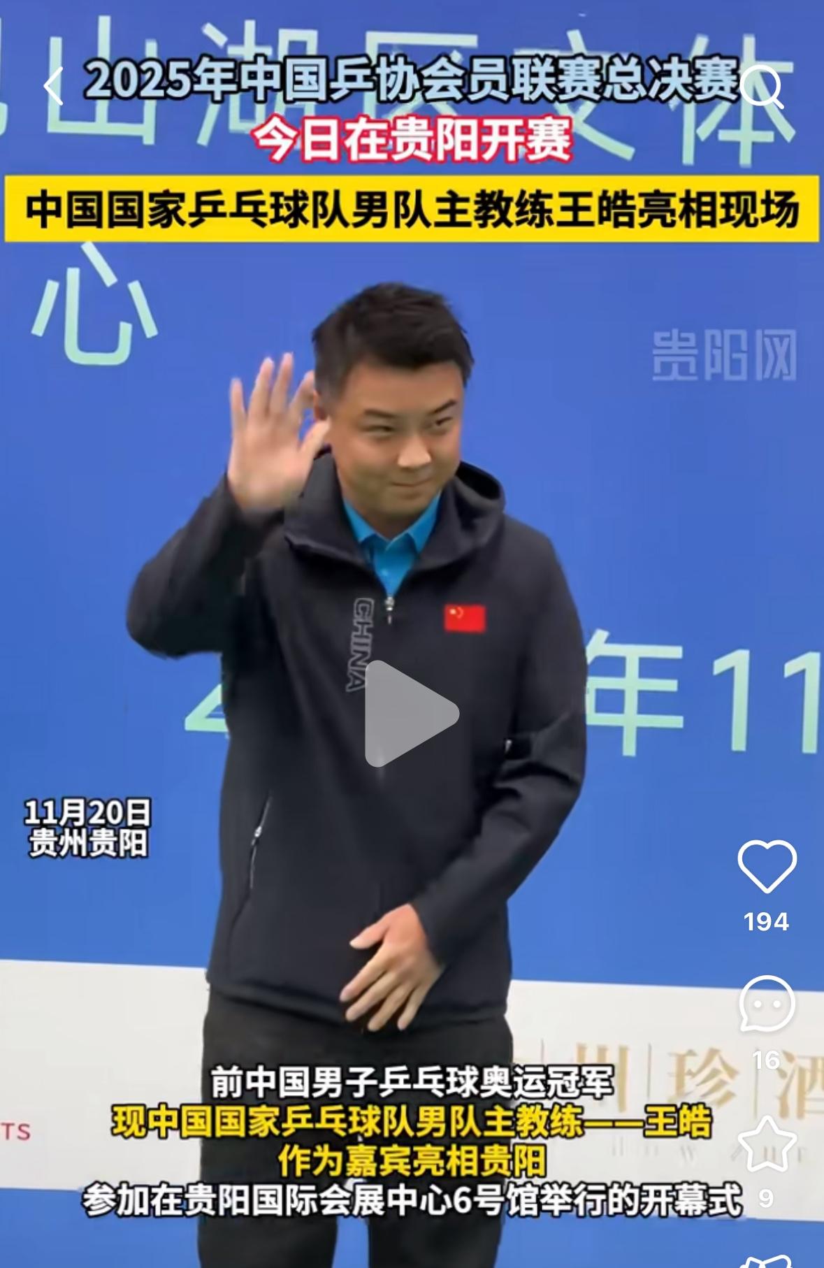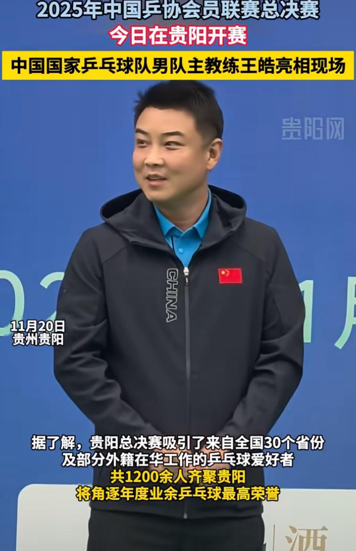 11月20日王皓指导亮相贵阳中国乒协会员联赛总决赛 贵阳总决赛吸引了30多个省份 的乒乓球爱好者, 将角逐年度业余乒乓球 最高荣誉! 王皓指导的放松假期即将结束, 成都混团马上就要开始, 明天就回去操心备战混团的训练, 好久不见的王皓指导年轻啦, 成都混团, 梁靖崑腰伤, 曼昱带伤, 王皓指导加油吧!