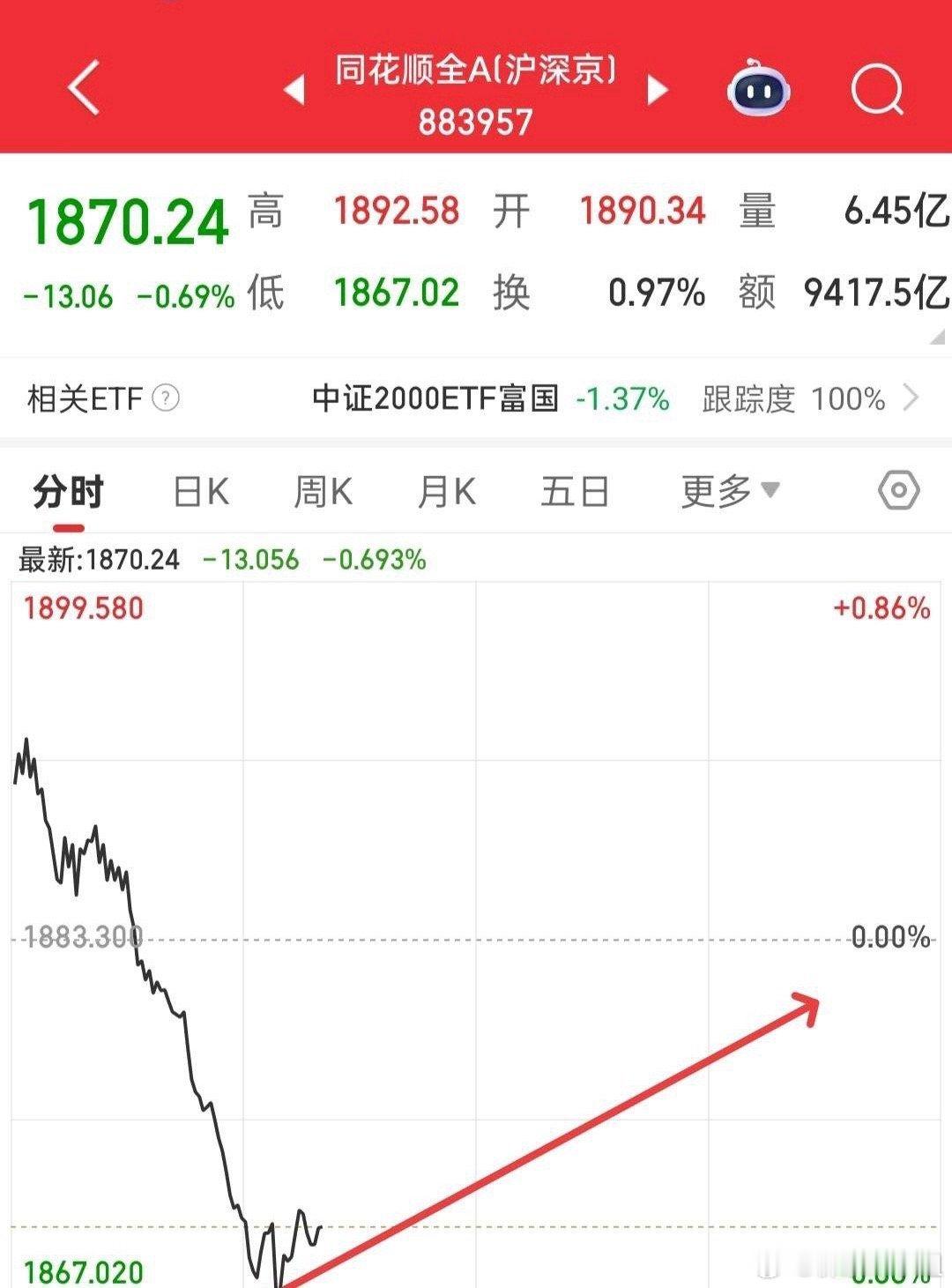 今天还能拿货!明天还有修复的预期,如果今天获利跑路,等待全A企稳,就可以继续在吸回来!今天情绪止跌了,但是修复力度不行,理论上讲,明天还要再给一次回暖的机会,如果今天没来得及跑,明天还有一次出局的机会!接下来中线选手不用再看我文章了,对你们已经用处不大了,我认为第一波牛市暂时结束,要深度回踩一下才能走二波牛!你们毅力比较坚定的,就不用看,不然会受影响,短线选手可以跟着我踩节奏玩,赚了就跑就好了!全A跌到位,可以分批拿货了!