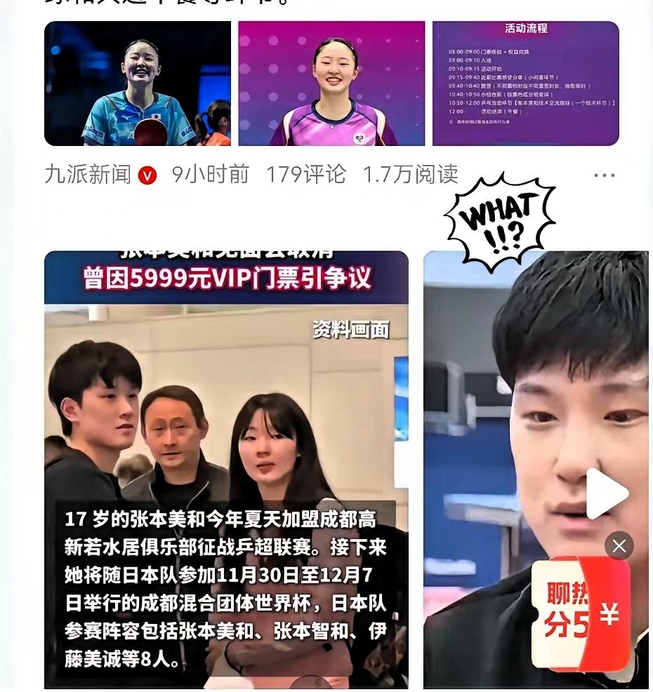 日籍华裔运动员张本美和拟回成都办付费见面会, 以日本籍身份面向中国球迷, 门票从99元到5999元不等, 引发广泛争议。 网友质疑:国内乒乓好手众多, 主办方为何偏邀放弃中国国籍的她? 这场活动除商业利益外无实质价值, 最终取消也算回应大众呼声。
