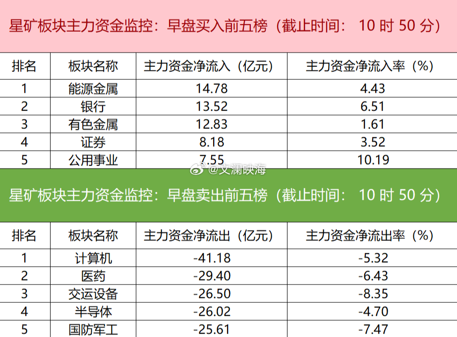 今日早盘主力资金净流入能源金属、银行、有色金属等板块,净流出计算机、电子、机械设备等板块,其中计算机板块净流出超35亿元。个股方面,新易盛上涨,主力资金净买入超7.49亿元,位列榜首,方正科技、大众公用、阳光电源获主力资金净流入居前;宁德时代遭净卖出超8亿元,比亚迪、多氟多、航天发展主力资金净流出额居前。