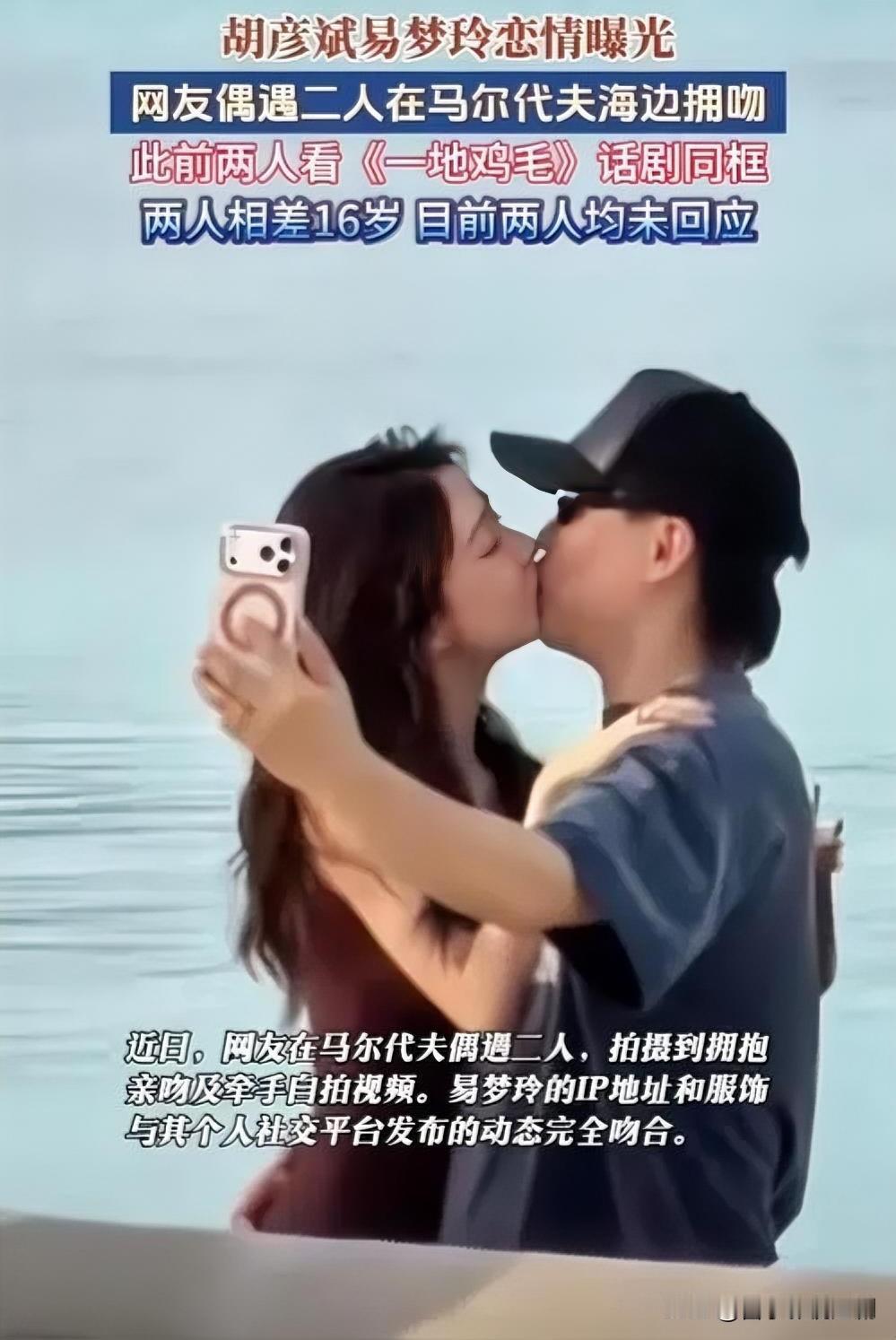 胡彦斌易梦玲恋情疑曝光,年龄差引热议 11月20日,“疑似胡彦斌易梦玲恋情”冲上热搜。多名网友称在马尔代夫偶遇二人,拍到他们海边牵手、拥吻及自拍。易梦玲11月19日抖音视频IP地址显示在马尔代夫,且服装与偶遇视频一致。此前话剧《一地鸡毛》首演大合照中两人同框,还曾戴同款手表。42岁的胡彦斌与26岁的易梦玲相差16岁,目前双方暂未回应。