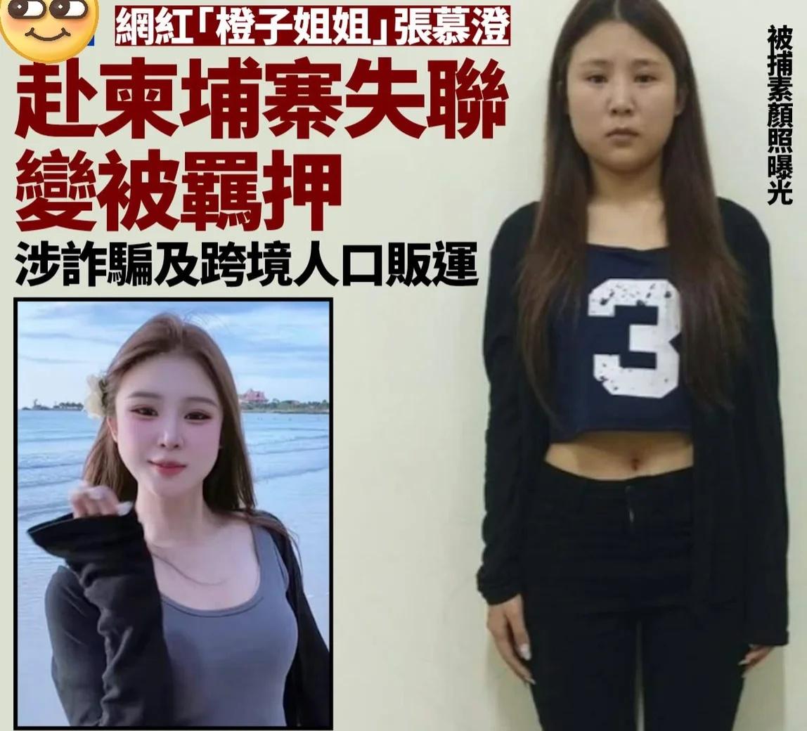 內地網紅「橙子姐姐」柬埔寨失聯引關注 證實 在抖音擁有11萬粉絲的內地網紅「橙子姐姐」於11月12日在柬埔寨失聯,引起極大關注。柬埔寨媒體19日報道,柬埔寨當局證實,「橙子姐姐」因涉嫌網絡詐騙及與不法團夥非法跨境販運人口,已於11月13日被警方拘捕,目前正被羈押於金邊白梳監獄,等待進一步審理。 《柬中時報》報道指,26歲的「橙子姐姐」原名張慕澄,當地法院指控其在2025年10月至11月期間參與多宗網絡詐騙活動,並涉嫌與不法團夥合作,從事非法跨境人口販運犯罪。消息人士向《柬中時報》透露,涉案犯罪所得曾流入張慕澄名下銀行帳戶。「橙子姐姐」近期因「失聯傳聞」引發大量網友關注。11月12日,其家屬與友人稱其突然失聯,且未依計劃於13日返國,因此在網絡上發布尋人啟事,引發關注。 據「橙子姐姐」家屬表示,「橙子姐姐」原計劃11月初赴柬埔寨探望友人,並已訂好返程機票。11月12日起其手機關機,同時與家人中斷聯絡,未在中國海關系統顯示入境記錄,因此被認為「失聯」。相關尋人帖文隨後在抖音、微博傳播,多名網友協助擴散信息。