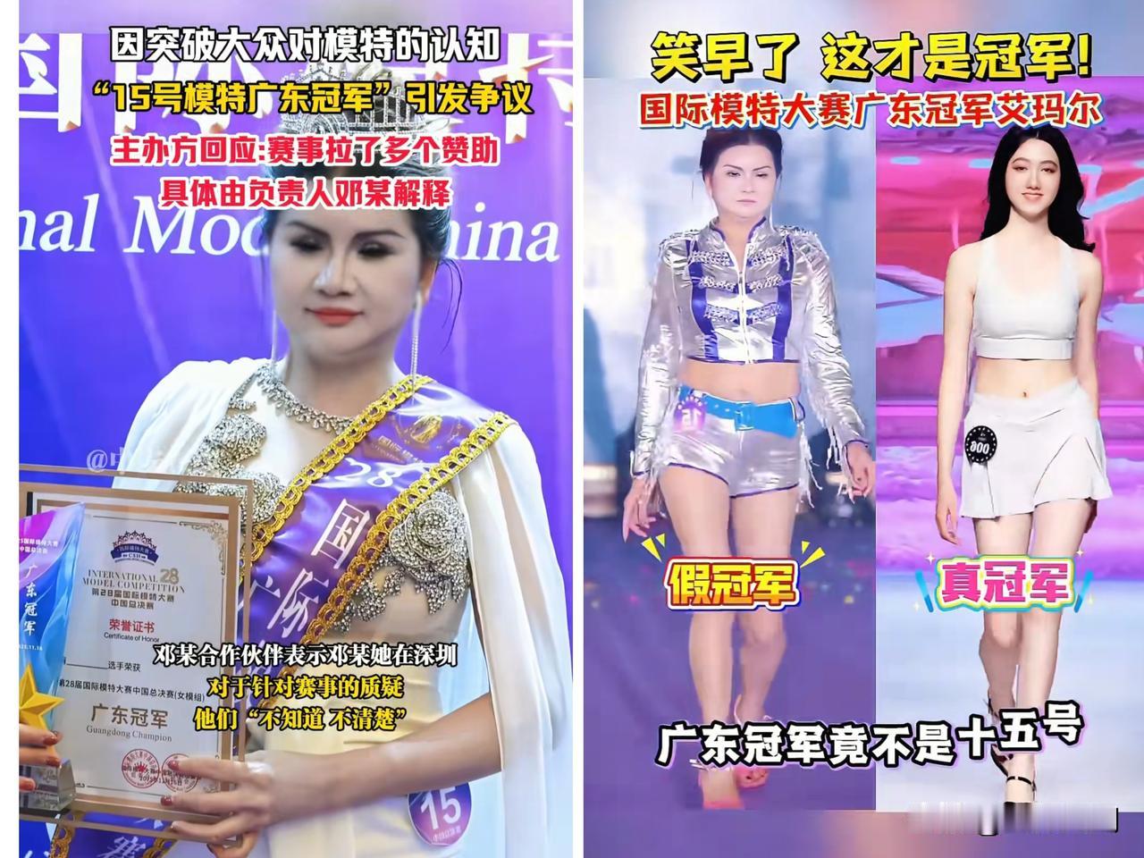 不仅大家没有想到。 估计就连赞助方都没有想到。 15号选手之所以能拿到女模冠军,是因为 工作人员失误导致的大乌龙。 决赛时15号一上台,台下和网上都炸开了。她台步不稳、体态欠佳,专业度和其他选手差好多,网友各种吐槽。结果组委会声明,她本是“太太组”冠军,真正女模冠军另有其人,这失误简直离谱。 这乌龙背后,暴露的是赛事的不专业。一场国际赛事,颁奖都能错,对选手和观众太不负责。赞助方也惨,本想提升知名度,这下却被骂不专业。咱看比赛,要的就是专业和严谨。你说这乌龙,到底是真失误,还是另有隐情呢?