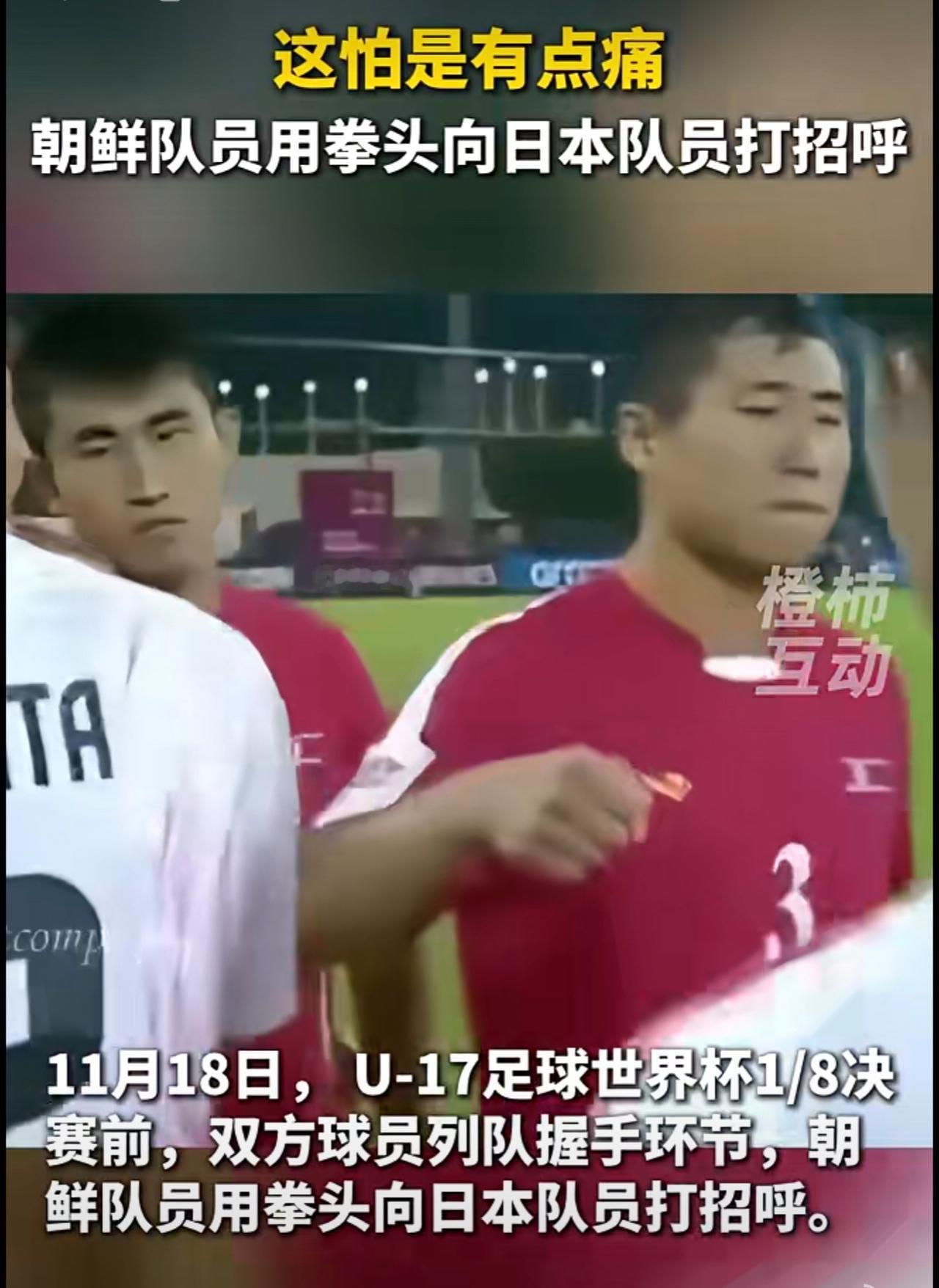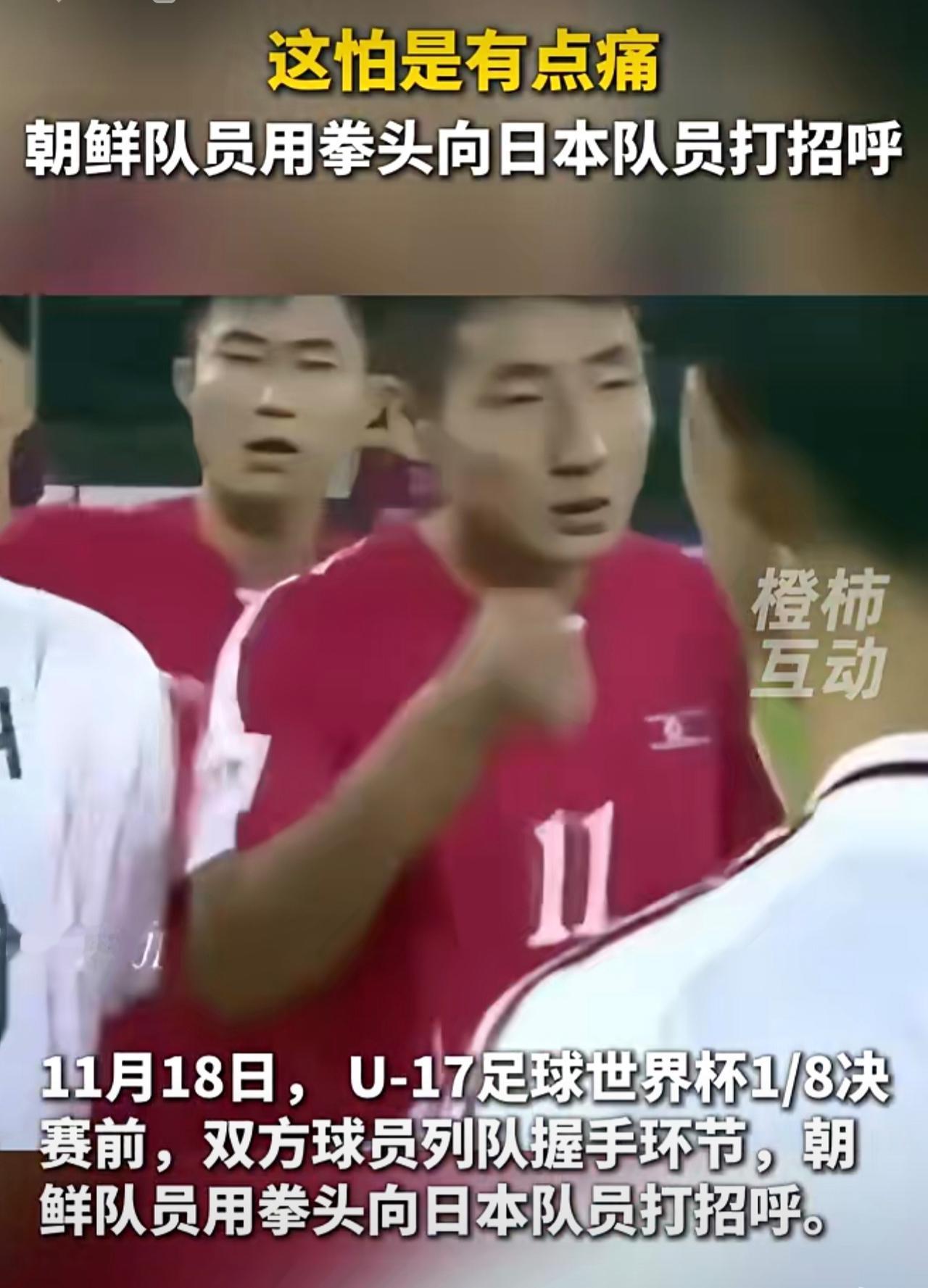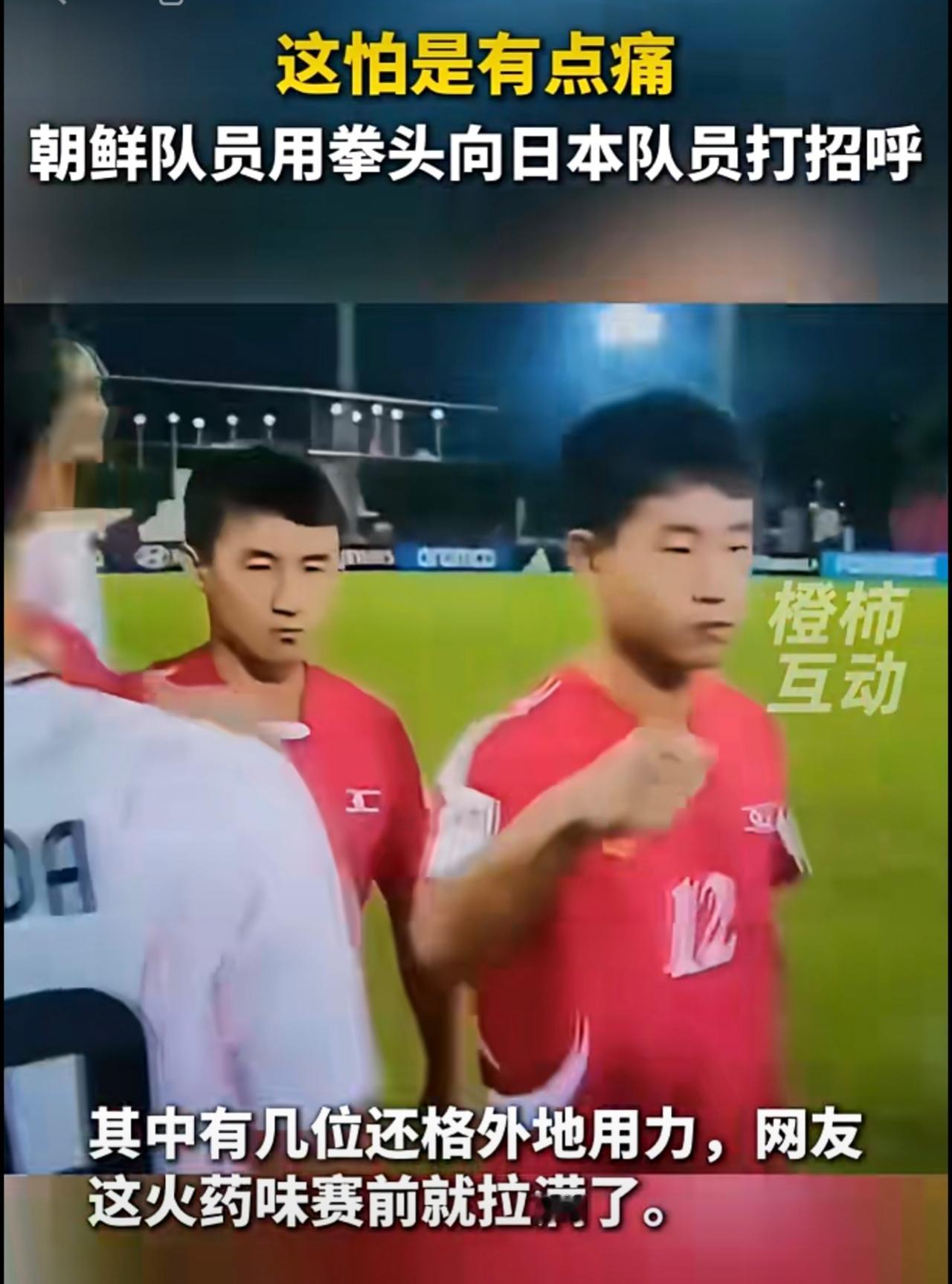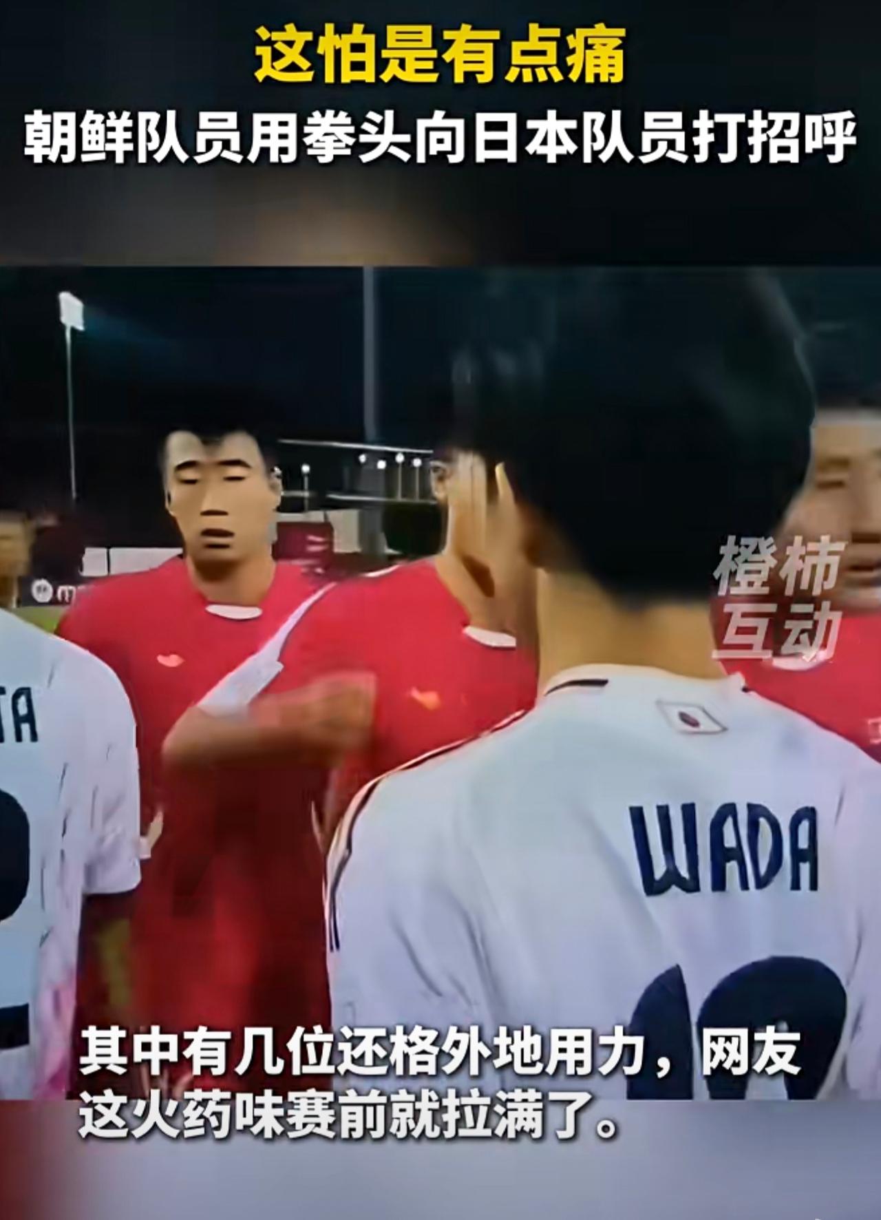 这怕是有点痛,朝鲜队员用拳头向日本队员打招呼,赛前火药味拉满。