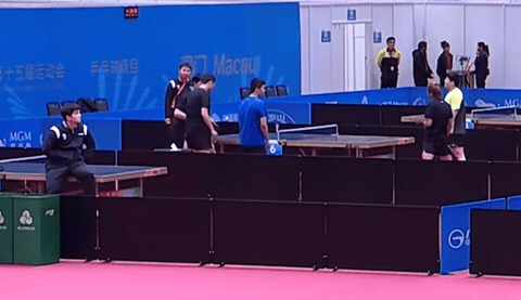 小胖不打球的时候就懵懵懂懂可可爱爱的像是没睡醒一样。 同伴在热热闹闹的练双打,他好像隔世一样,安安静静地坐着一动不动地不知道在沉思着什么,时间在他这里,如静止了一般泰然若山。 另外看双打训练的搭档,还是许昕和周恺在练,看来上海队今晚的决赛是以不变应万变了。 小胖加油,上海队加油,下午狠狠打! 樊振东