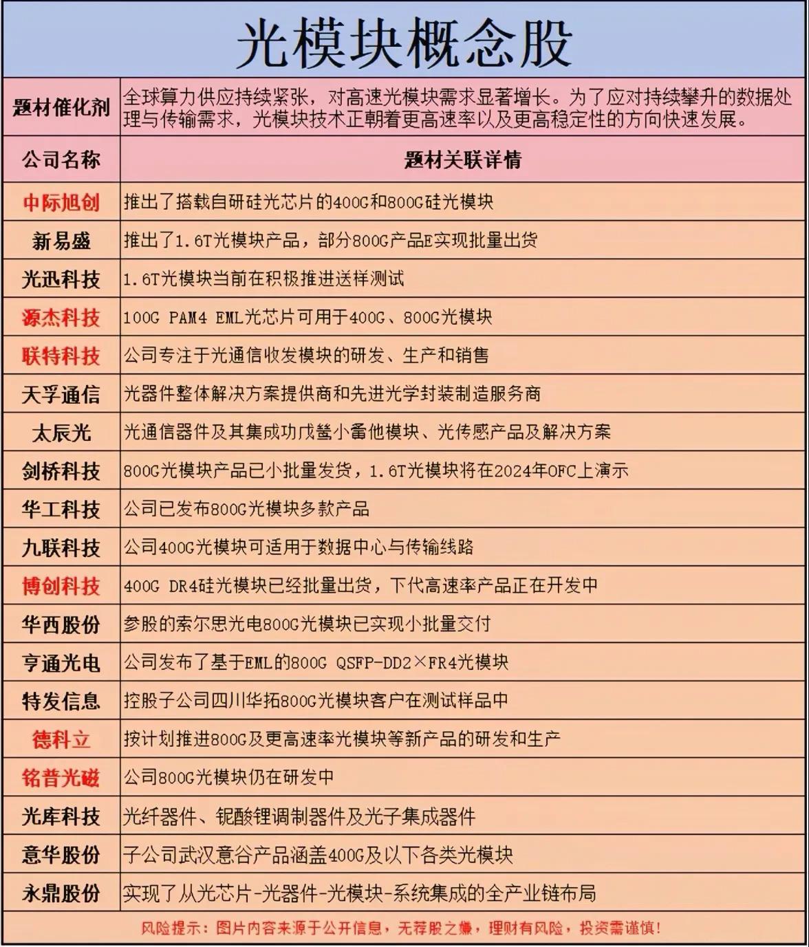 关键金属+光刻胶+水产养殖+贵金属+算力+光模块概念