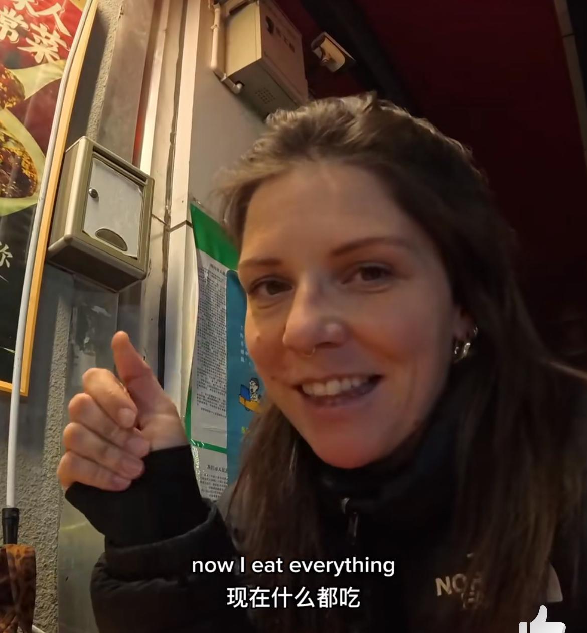 素食主义者来到中国后什么都吃,甚至还吃上了血旺,这跨度好比清真吃猪肉一样,她以前不吃肉不吃蛋不吃奶制品,每天只吃蔬菜水果,没想到来到中国后什么肉都吃,连鸭血猪内脏也可以接受了,吃嘛嘛香也不挑食了,原来以前是被迫素食主义吧