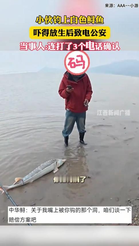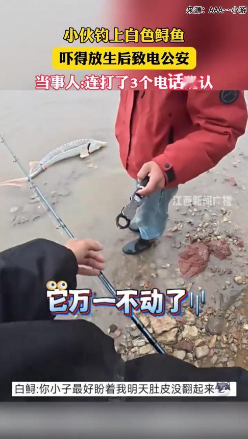 “笑不活了!”11月17日,江西九江,一男子在河边钓鱼时,好不容易钓上来一条鱼,可还没等他高兴,却发现鱼背上有黑色的凸起,看起来非常怪异!费了一番力气拉上岸后,男子确认这是中华鲟,于是连忙放生。网友:其实是它放过了你! 钓鱼可是个技术活,别看很多人在岸边一坐就是一天,但大多数人却连鱼护都用不上,毕竟钓鱼还和运气有关,着急也没有用。 当天上午,游先生喊朋友一起钓鱼,二人来到环境优美的河边,拿起装备便开始享受悠闲地人生。 可惜二人的运气稍微差了点,几个小时过去一条鱼都没有钓到,就在游先生再次挥杆时,却感受到鱼竿传来剧烈的抖动,他意识到这是有鱼上钩了,于是立即收竿。 经过数十分钟的鏖战,大鱼终于没有了力气,被游先生逐渐拖到岸边,也就是在这个时候,游先生才看清了鱼的模样。 只见这鱼和寻常钓到的鱼都不一样,身体白白的,背上却有黑色的凸起,俗话说得好“长得越怪,判得越久”,游先生越看越觉得不对劲,怀疑这是一条中华鲟! 把大鱼拉上岸后,二人急忙将鱼钩取下来,然后将鱼放生了,为了以防万一,他们还拍了视频留作证据,随后更是给公安打去电话报备,这才心有余悸的回家了。 网友看后表示,表面上看是他们放过了这条鱼,实则是鱼放过了他们,这鱼要是突然翻肚皮了,估计能把二人吓得够呛! 信息来源:《小伙钓上白色鲟鱼吓得放生 小伙钓上白色鲟鱼吓得放生后致电公安,当事人:连打了3个电话确认》江西新闻广播