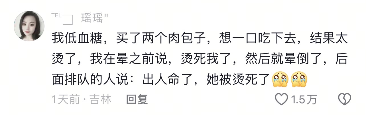 我在晕之前说烫死我了,然后就晕倒了,后面排队的人说:出人命了,她被烫死了