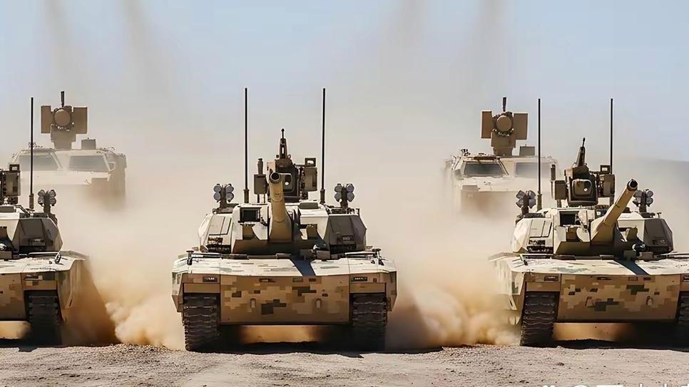 “九三”阅兵式上,100式主战坦克公开亮相,100式的战斗全重35~40吨,比同时亮相的99B主战坦克轻巧得多,100式坦克走的是信息火力一体化的道路。 目前,欧洲的那些主战坦克也在进行改进。比如说法国的“勒克莱尔”进化版主战坦克,该进化版主战坦克依旧采用双人炮塔设计,车长、炮长位于炮塔内,驾驶员位于车体的左前侧,右前侧增加了一名副车长。副车长的工作主要负责控制各类传感器、操作遥控武器站、三联装巡飞弹作战。进化版的主炮依旧一门120毫米滑膛炮、还可升级为140毫米滑膛炮),配备自动装弹机。另外,炮塔上安装有一套新型遥控武器站,配备30毫米机关炮,能发射可编程炮弹,用于打击无人机等目标。炮塔上还有“战利品”主动防御系统、“长钉”导弹发射装置。 有一说一,“勒克莱尔”的进化版,与100式坦克相比,在信息化改进方面就是一个初级版本,在主炮的口径上,继续使用120毫米滑膛炮,还有升级到140毫米滑膛炮的可能。 而中国的100式坦克,最引人注目的就是它的无人化炮塔,炮塔四周的相控阵雷达面板和各种和光电传感器,炮塔顶部的遥控武器站和车长全景观瞄系统。另外,炮塔顶部的 两组GL6主动防护系统,每组配备了4枚拦截弹,两组合计8枚拦截弹,足够支持一次完整交战循环所需要的。 在火力配置方面,100式坦克配备了一门105毫米高膛压线膛炮,7.62毫米同轴机枪1挺,12.7毫米可遥控高低两用机枪。100式坦克战斗全重35~40吨,这些武器配置属于标准实用的组合。因为,100式更可以看做是加强了信息化作战系统的15式轻型坦克,采用了相同的武器配置,而没有必要“扛上”125毫米大口径滑膛炮。