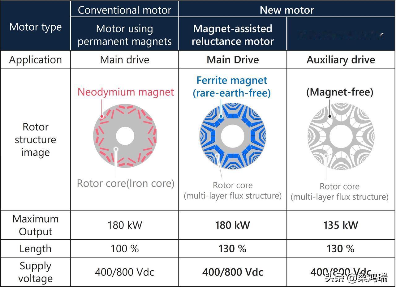 日本汽车零部件制造商日立安斯泰姆(Hitachi Astemo)开发出了使用不含稀土的磁铁来工作的纯电动汽车(EV)用马达。 该新型马达采用了同步磁阻电机(Synchronous Reluctance Motor, SynRM)技术,通过优化转子铁芯的形状来产生扭矩。 该公司声称,这款新型马达的性能可与传统的含稀土永磁电机相媲美。 此举旨在减少对稀有资源(特别是稀土元素)的依赖,从而规避采购风险和价格波动,确保稳定的供应。 为了解决无磁铁电机在大电流下产生的热量增加问题,Astemo 开发了一种将线圈浸入冷却油中的结构,有效抑制了热量的产生。 该公司希望借此降低地缘政治风险,目标是2030年前后将其用于量产车。