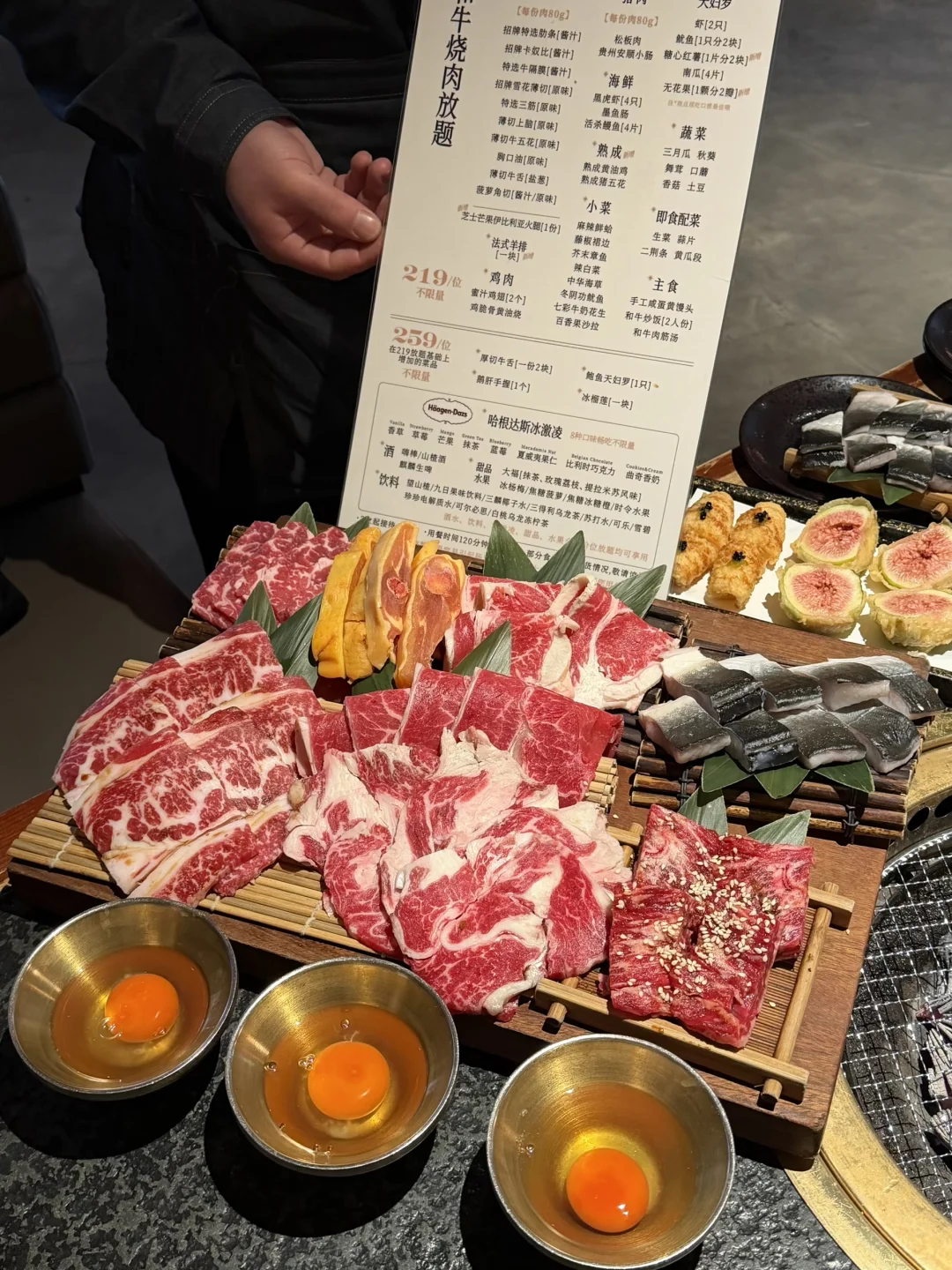 各种肉肉的品质都很不错 还有帮烤服务 最主要的是他家的榴莲真心好吃!!! 还有哈根达斯冰淇淋😭😭😭