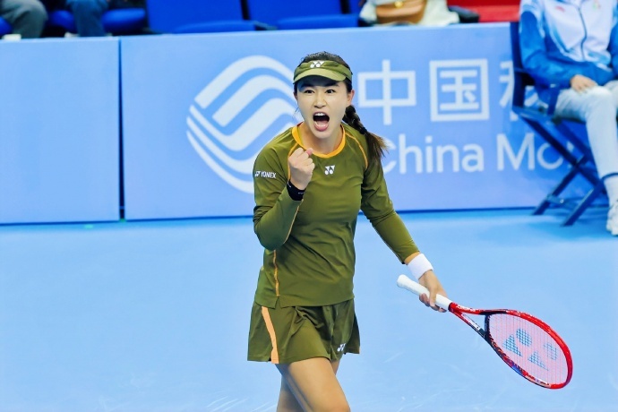 11月20日,第十五届全运会网球女子单打决赛在广东横琴国际网球中心上演巅峰对决。安徽名将朱琳以6-1、6-2直落两盘击败北京选手高馨妤,职业生涯首次夺得全运会女单金牌。 (安徽省体育局)