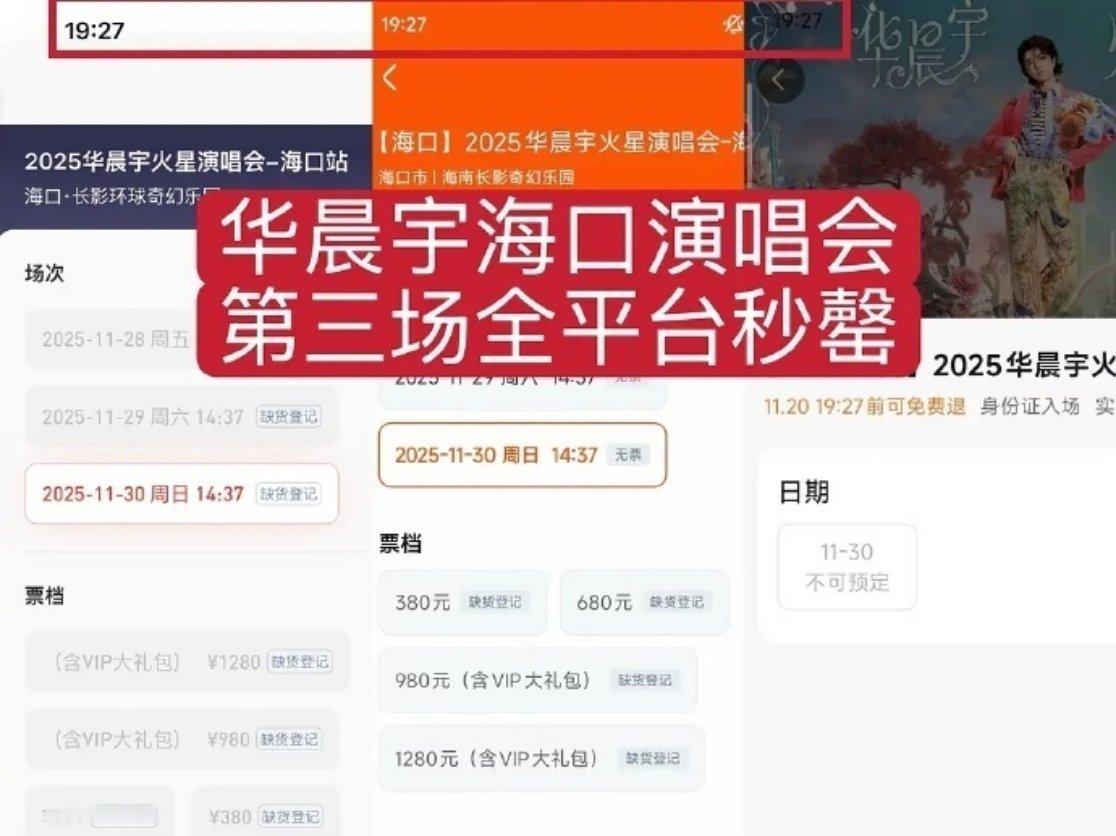 华晨宇 演唱会临时变更到海口,三天连开三场,依旧全平台秒磬了也是见识到了火星乐园抢🎫的地狱难度