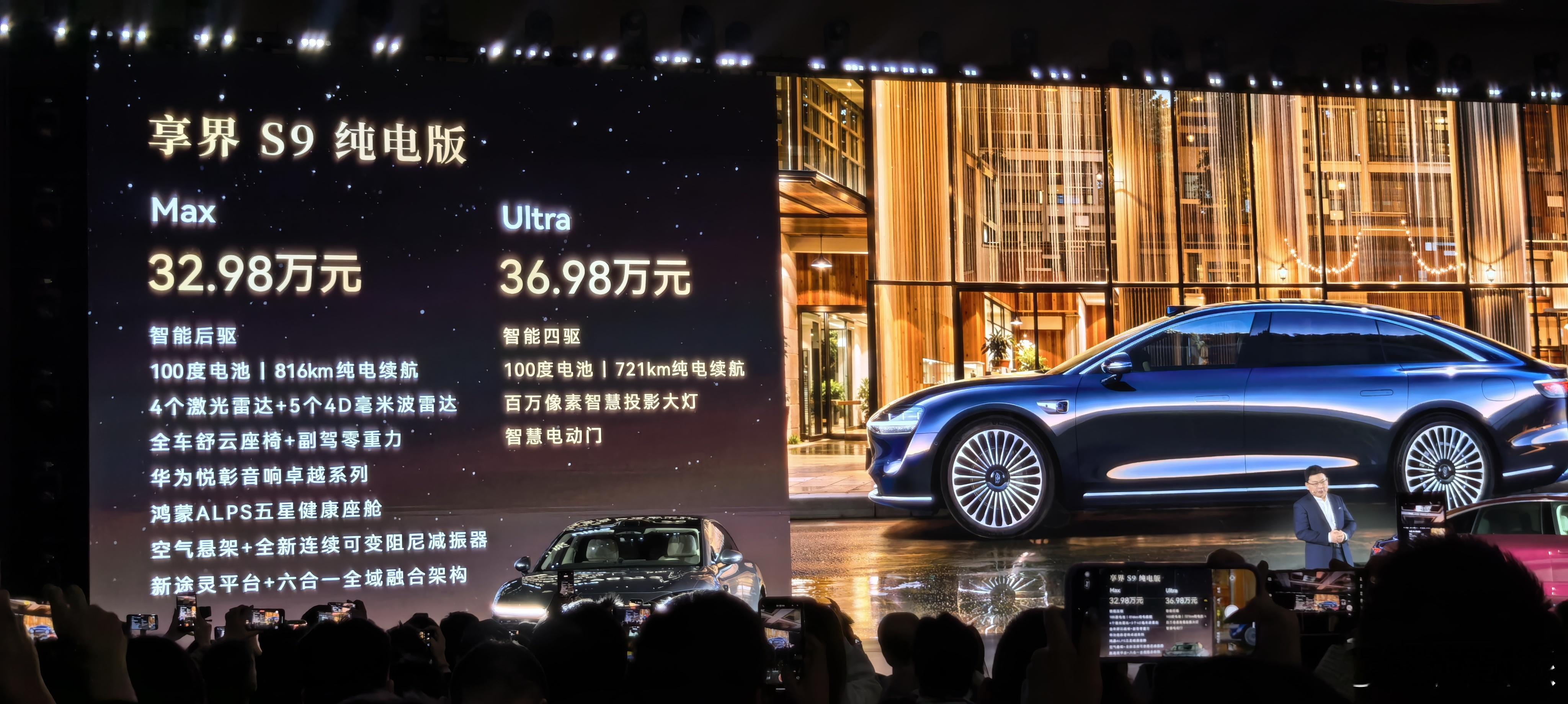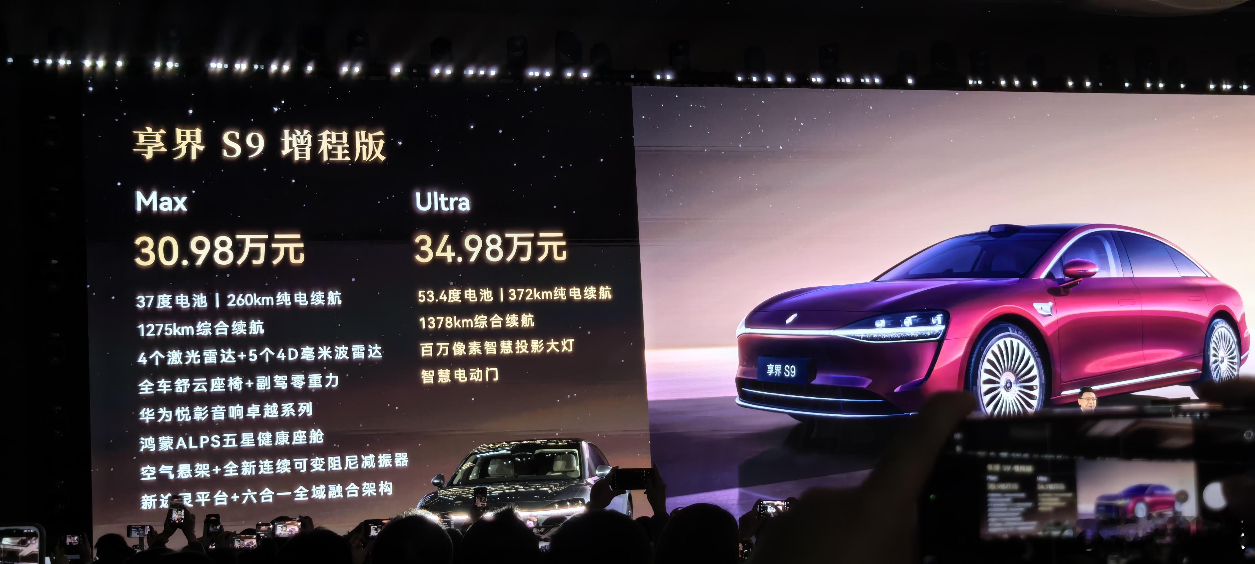 新款享界S9价格来了,增程版30.98万起,纯电版(标配100度电池)32.9
