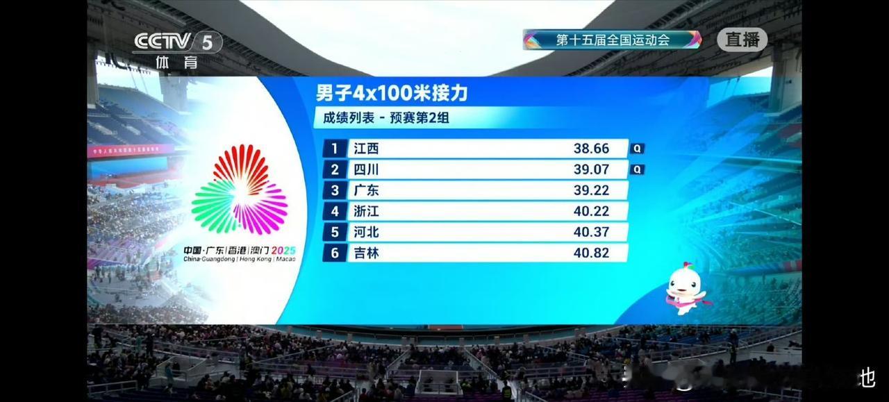 男子4x100米接力广东惊险晋级决赛幸好还是有惊无险进了决赛,别因为保留实力搞得看不到苏炳添告别战,那就搞笑了……这个成绩在第二组都晋级了,足见运气不好,广东被分进死亡小组了哈哈,不过还好,就有可能决赛道次不咋滴了,希望别影响苏神最后的告别演出吧,大家都是看来的[飞吻]