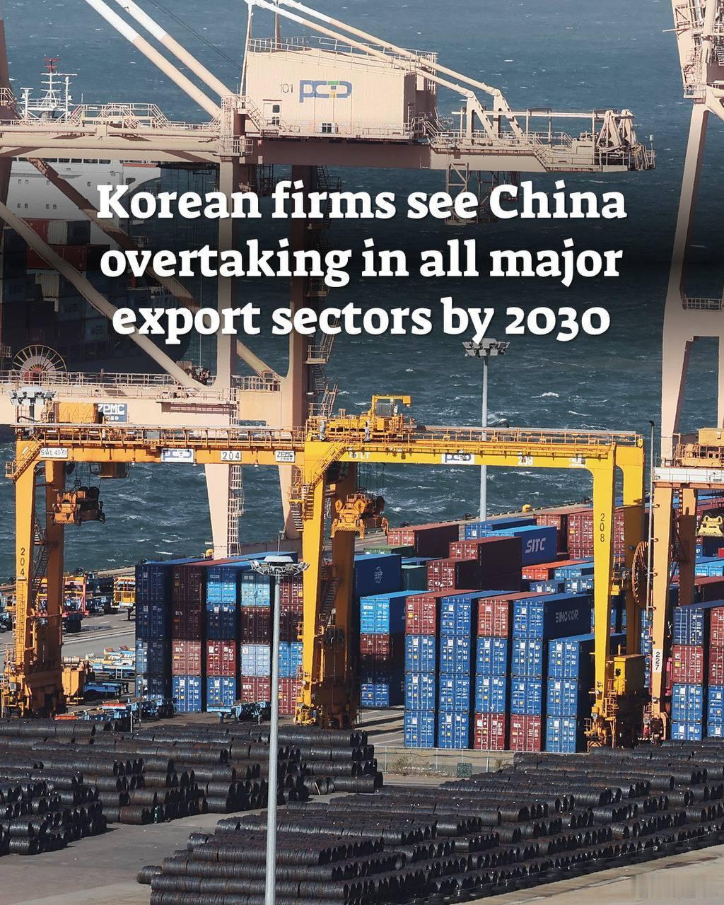 韩国预测,到2030年,本国最重要的十大出口部门,将全面被中国超过,包括半导体和电子等