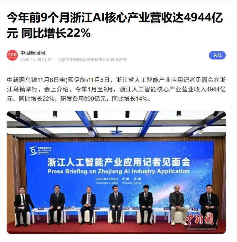 AI这场风口,到底谁真赚钱了?全世界都还在烧钱试错,浙江已经靠它实打实赚了近5000亿! 过去大家都在说AI是“未来的金矿”,可浙江人早就挖出了第一桶金。 据最新数据显示:浙江人工智能核心产业在今年前3个季度营收高达4944亿,同比增长22%。这不是PPT上的空话,是硬邦邦的收入账单。而最能打的,还得看杭州:DeepSeek和阿里Qwen这两个AI大模型,不仅双双打进全球AI榜前十,在AI投资实战中也是全球唯二能赚钱的模型。说白了,美国烧了上万亿砸模型,浙江靠两张牌就赚了真金白银。 更绝的是,浙江没停在实验室,而是让AI下了场。义乌商贩凌晨靠AI做带货视频,第二天就能飘到中东刷屏;绍兴纺织厂用AI分析全球流行趋势,爆款一眼锁定;温州老板把AI装进生产线,不良率直接腰斩。AI不是“高大上”的标签,是厂子里能赚钱的工具。 为什么浙江跑得这么快?说白了,这地方从来不等风来,而是先把风扇插电自己造风。40多年前的“鸡毛换糖”,就是靠信息差赚差价;今天的“数据换金”,依旧是用技术把生意做深做透。没大模型?就自己攒集群。缺显卡?就搞国产替代。没场景?小商品、小家电、小五金,统统来一遍“AI+”。 这才是浙江厉害的地方:不管时代怎么变,手里那根“赚钱的筋”始终拧得死紧。 AI是风口,但风过之后谁还站着,靠的不是PPT和估值,而是真本事。浙江做到了。其他地方想跟上,也得问问自己:你真的把AI用到赚钱了吗?