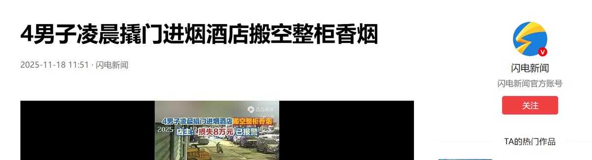 “胆大包天!”河北保定,4名男子凌晨撬门进到路边一家烟酒店,直接搬空店里一整柜的香烟,店主:偷的全部都是烟,装了一后备箱,损失8万元! 换谁也想不到,凌晨的街头能有这么嚣张的盗窃,那天凌晨夜色正浓,街上没什么行人,这伙人就借着夜色的掩护,摸到了这家烟酒店门口,他们都戴着帽子和口罩,把脸遮得严严实实,一看就是早有准备,不是临时起意的蟊贼。 从后来监控拍到的画面能看出来,这 4 个人分工特别明确,动作也麻利得很,显然是惯犯,对作案流程熟门熟路,最让人觉得胆大包天的是,他们作案时的那种 “松弛感”,简直把别人的店铺当成了自家的储物间。 按理说盗窃这种事儿,罪犯都会慌慌张张、速战速决,可这伙人不一样,在店里疯狂搬香烟的间隙,其中一个看着年纪不大的男子,竟然还慢悠悠地走到冰箱跟前,拉开门顺走了两瓶饮料,就跟在自己家拿东西似的自然,这种在犯罪现场还能心安理得喝口水的心态,不光是对法律的无视,更是对店主的公然挑衅,实在是嚣张得没边了。 他们下手的目标特别精准,专挑值钱的高档香烟动手,店里原本摆得满满当当的香烟柜台,没一会儿就被他们洗劫一空,中华、芙蓉王、玉溪这些市面上流通性强、价格不菲的硬通货,全被他们打包带走了,据店主事后盘点,被偷走的香烟足足有三百多条,其中实打实的损失就有二百六七十条,算下来价值 8 万元。 你能想象那个场景,这 4 个人手脚麻利地把一条条、一箱箱香烟往门口的接应车上搬,动作快得像抢一样,短短 10 到 15 分钟,店里的香烟就被搬得一干二净。 等店主赶到现场看着空荡荡的货柜,心里又气又急,那种忙活多年的心血一朝被清空的无力感,比单纯的愤怒更让人难受。 为了闯进店里,这伙人也是下了狠手。店门口的卷帘门看着厚实,却没能挡住他们,他们专门找了卷帘门底部大梁的薄弱点,用工具暴力破坏,硬生生弄出了入口,里面的玻璃门明明已经落了锁,也被他们简单粗暴地砸烂了锁具长驱直入,整个过程没什么犹豫,所有的破坏都是为了尽快把香烟搬空。 得手之后他们撤退得也很 “果断”,最后一个离开的人刚上车,接应的同伙就不耐烦地摁了两下喇叭,那声音在寂静的凌晨格外刺耳,像是在宣告 “事儿办完了,赶紧走”,紧接着载满赃物的汽车就消失在夜色里,只留下被砸坏的锁头、破碎的玻璃和空荡荡的店铺,一片狼藉。 店主发现被盗后第一时间报了警。这起案子不光让店主损失了 8 万元的财物,更让他心里发寒,好好的店铺,竟然能被人这么轻易地闯入洗劫。 想想真是让人气愤,店主起早贪黑忙活生意,攒下的货物就这么被人明目张胆地偷走了,这伙人的行为不光是偷钱,更是破坏了做生意的安全感。 希望这起案子能尽快告破,帮店主挽回损失,也希望所有商户都能提高警惕,做好安防措施,别让这种胆大包天的窃贼再有可乘之机,毕竟辛苦赚来的钱和货物,可不能就这么轻易被人抢走了。 (信息来源:闪电新闻——4男子凌晨撬门进烟酒店搬空整柜香烟)