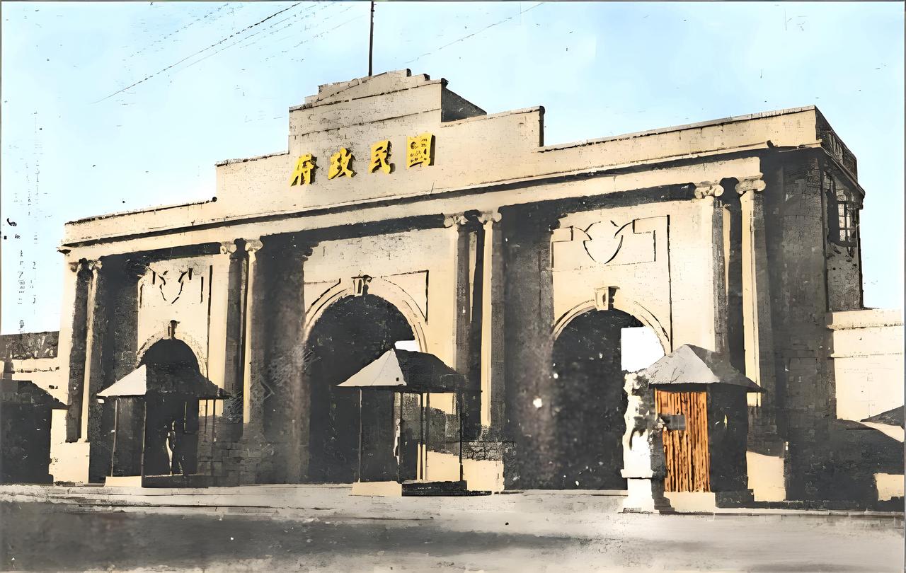 1946年,国民政府还都南京,重新修整了国民政府大门。门前岗亭矗立,石狮镇守,尽显行政建筑的威严感。原国民政府大门在抗战期间被汪伪傀儡政权篡改(换上 “中華民國維新政府” 匾额),还都后为重塑国民政府的 “正统性”,对大门进行修整并更换匾额。