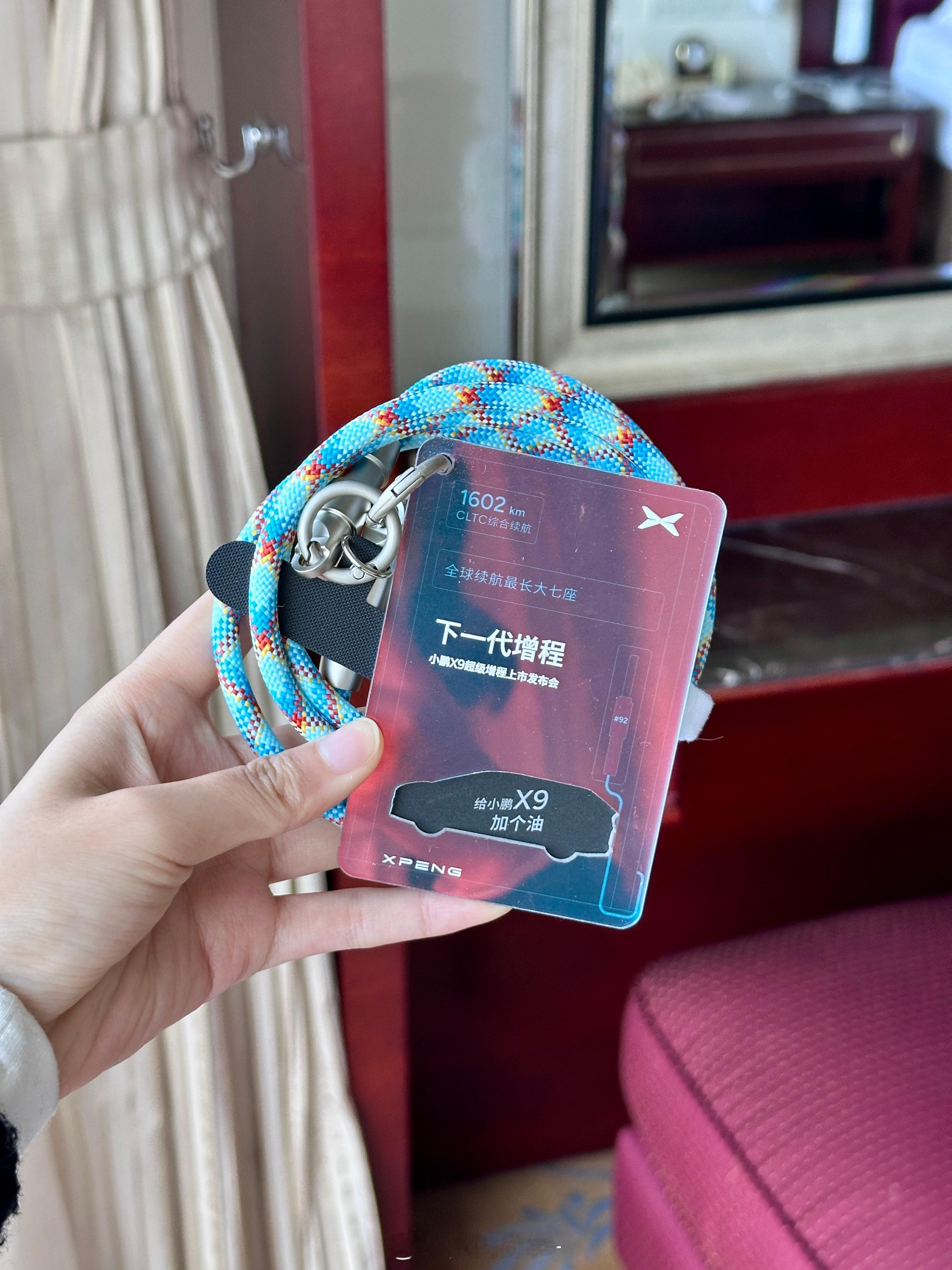 来喽现在各家车企的媒体证做的越来越精美了小鹏X9增程的这个媒体证绳子可以拧开,里