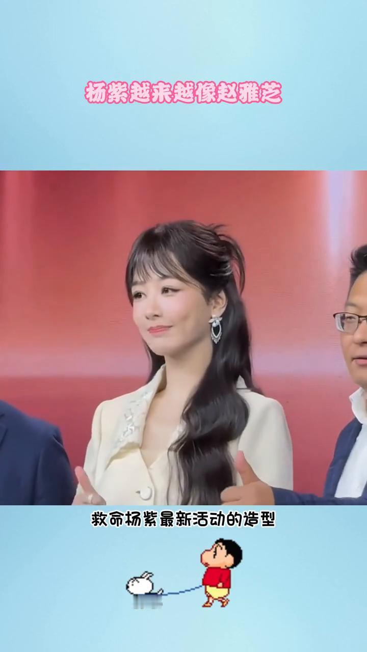 杨紫越来越像赵雅芝。 救命,杨紫最新活动的造型,脸蛋和穿着怎么有种割裂感?看着这么像赵雅芝,真是越看越陌生了。不是美的像赵雅芝,而是年龄层面感的像。要知道视频还是加了滤镜的效果,她的妆造团队真的是一言难尽。杨紫明明很年轻却打扮的这么老气。