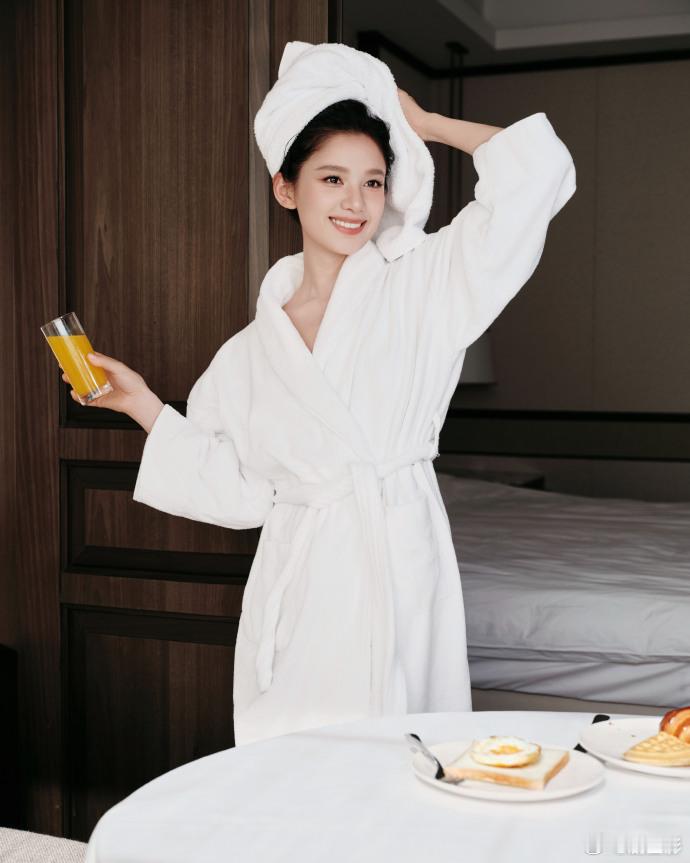 张婧仪穿浴袍都这么美,清爽又干净的氛围,真的是太让人爱了。简直就是我的居家女友的即视感,又同时很有魅力。