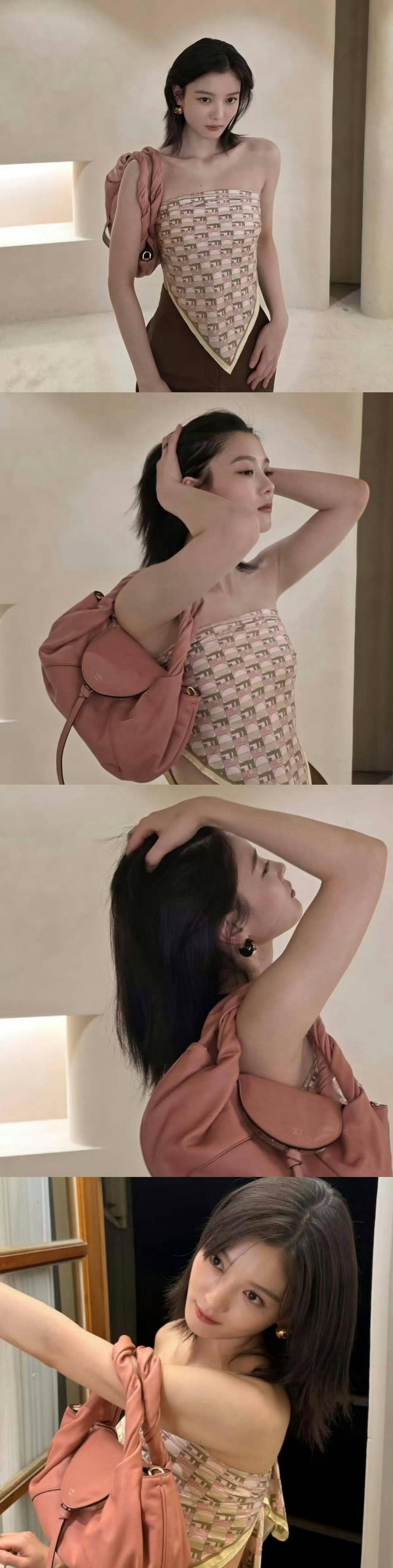 刘亦菲把死亡玫粉穿出了定制款的感觉,这种颜色普通人穿上分分钟黑三度,她居然能穿出