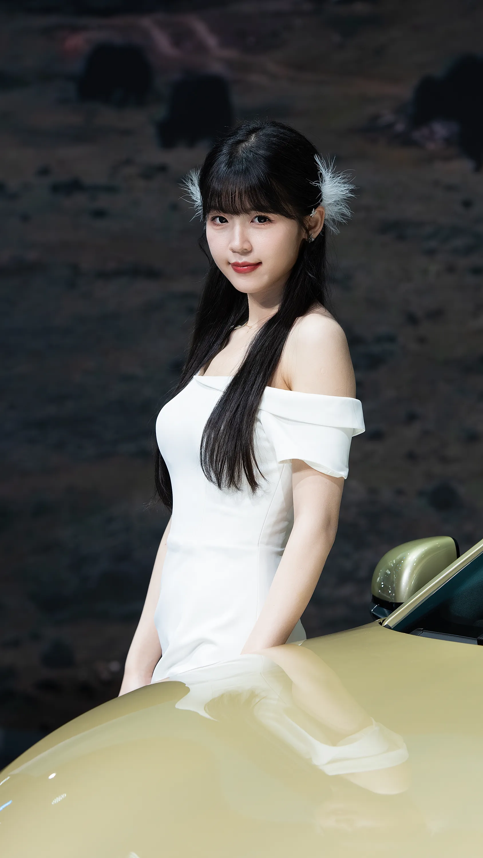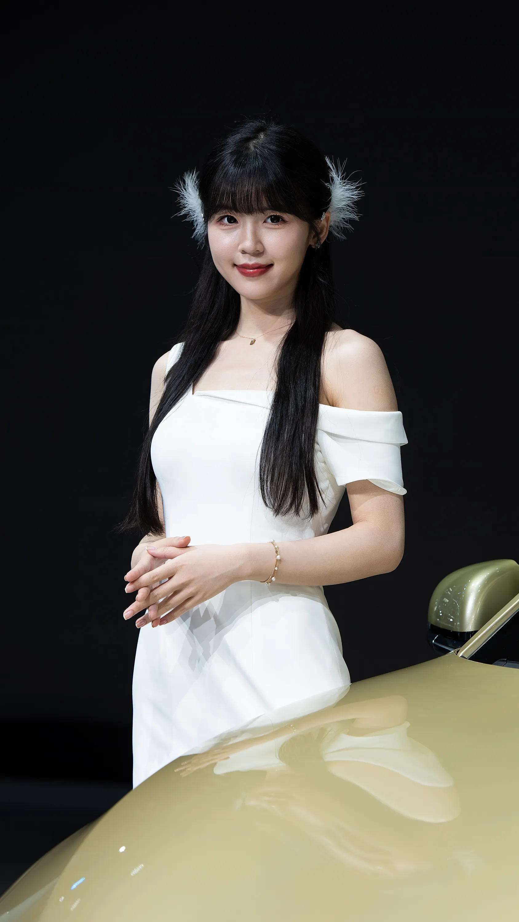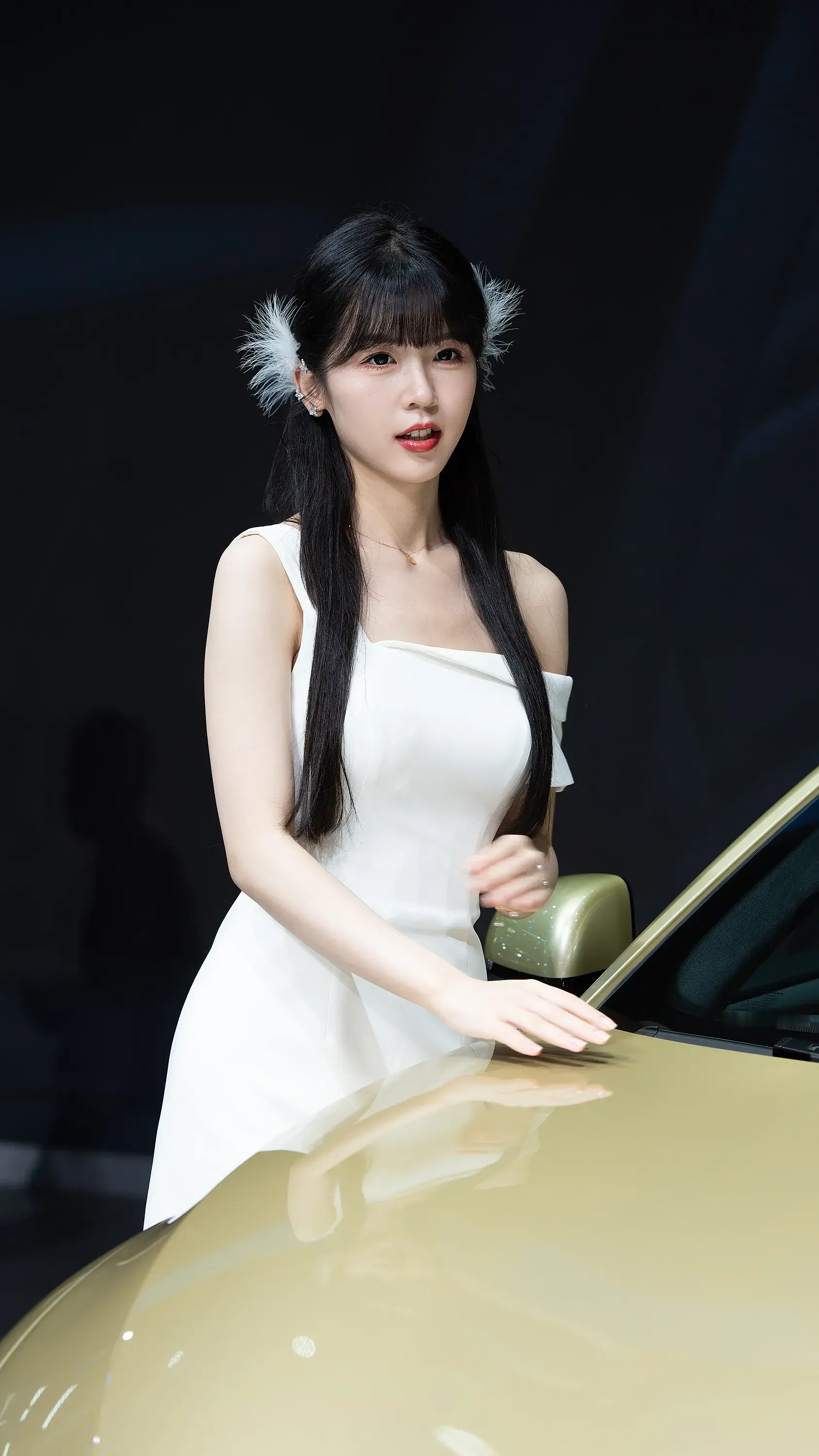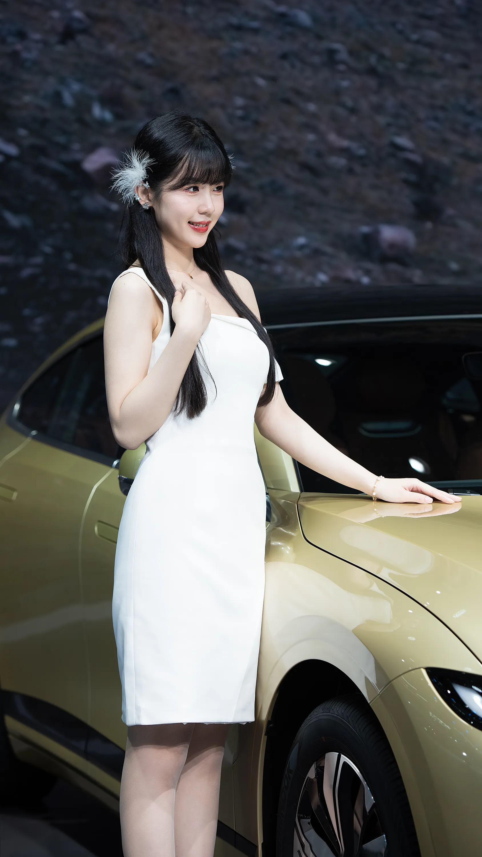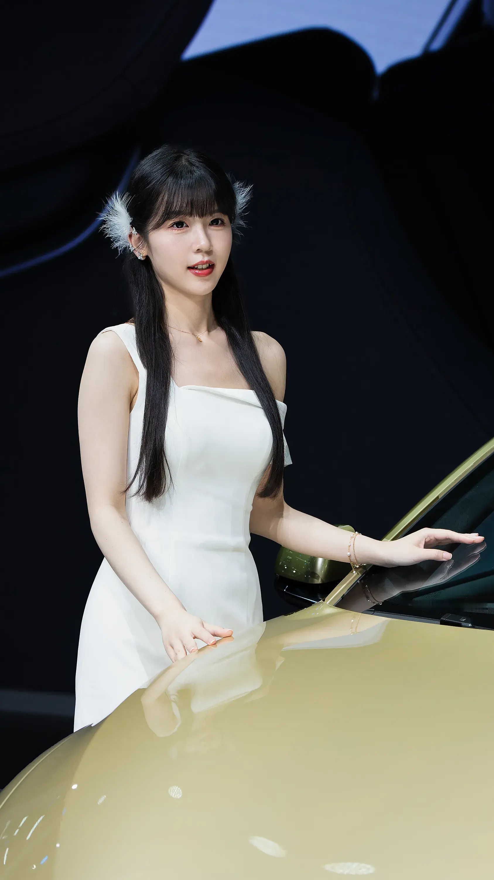 花开花落,车来车往。甜美少女在车展上自拍,车模风穿搭,超可爱!💖🚗