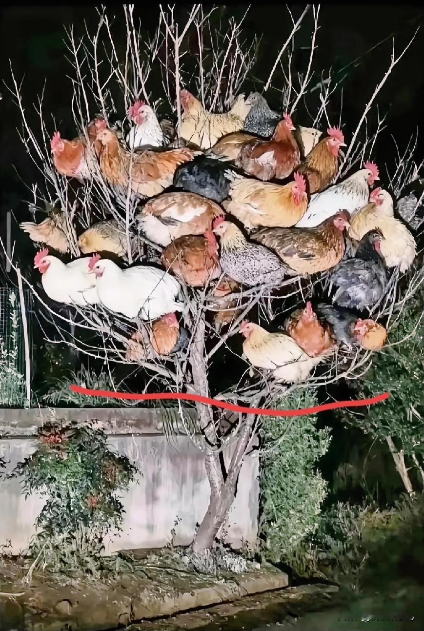 鸡界“抱团取暖”现场: 一整棵树都被鸡占领了
