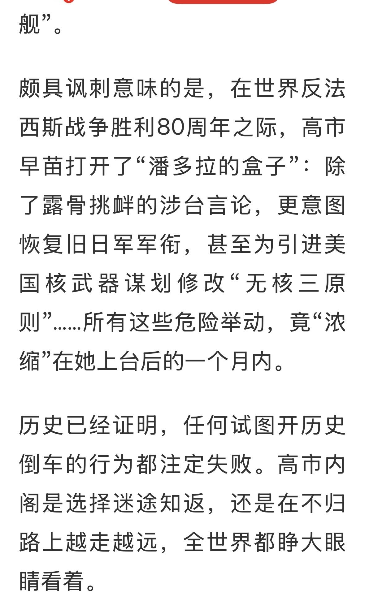 中日关系向何处去?中日这种态势发展下去,最后的结果是什么?中日之间会不会爆发战争?先在这个问题上作出自己的判断,然后再对照一下,这是不是国家的判断?千万不要把自己的胡思乱想,和国家的决策相对立,每个有影响力的法V,比如高志凯、张维为这样有影响力的人物,不能带动民众情绪,把自己的话语控制在发言人的范围之内,不要越界。一定要汲取胡锡进22年8月2日的教训。要特别珍惜公信力这个东西,我也知道什么东西有流量,但是,要维护国家根本利益!高市早苗 热点观点