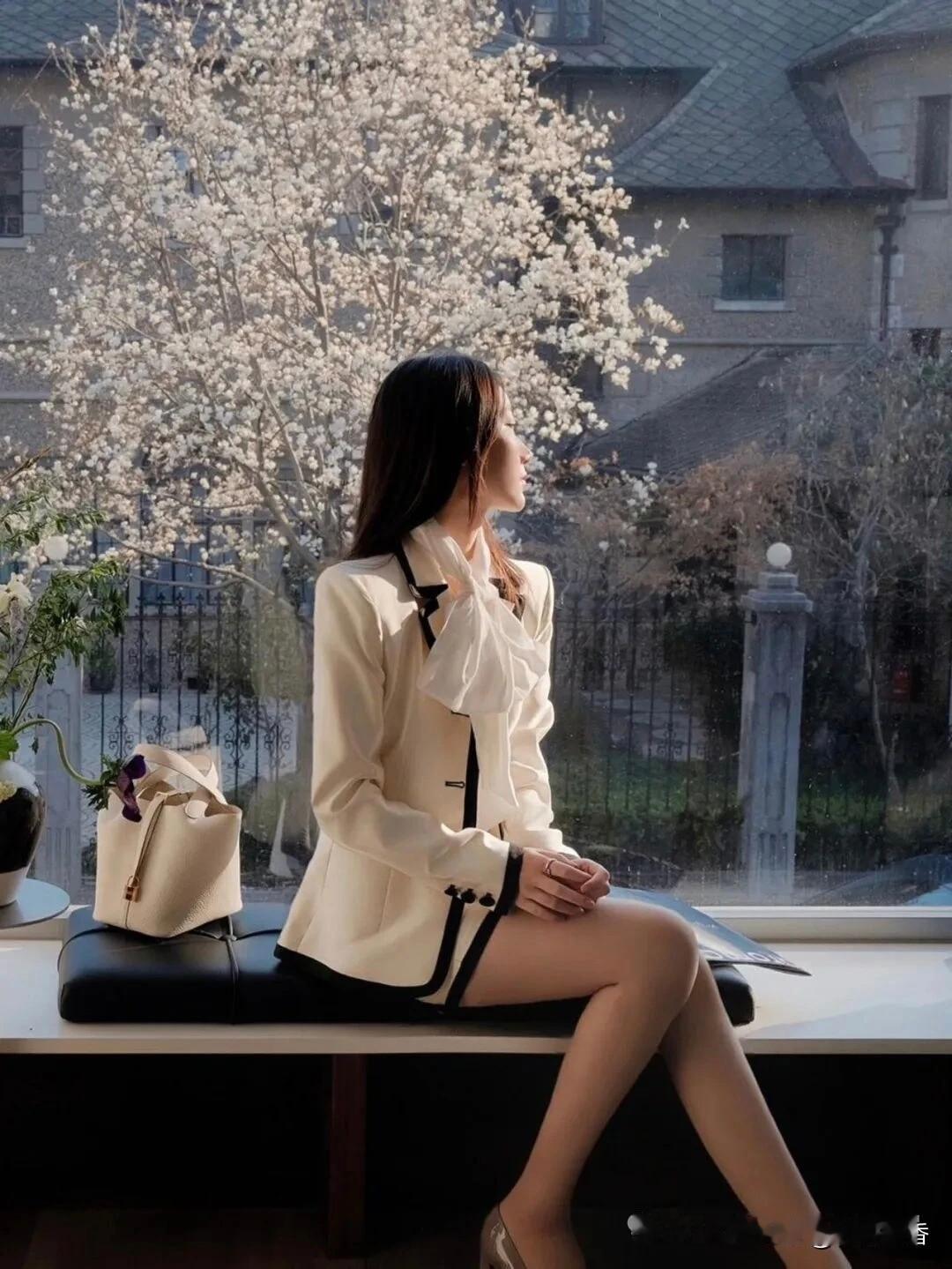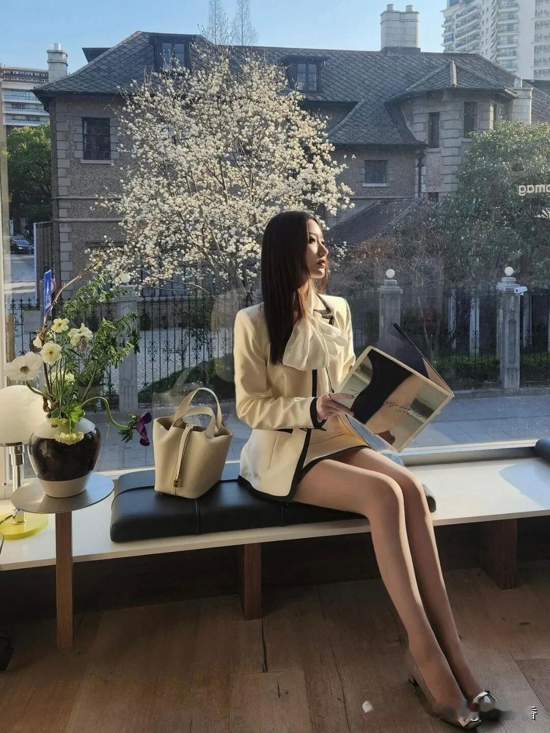 优雅咖啡馆,绿植环绕,时尚穿搭,尽显女性魅力