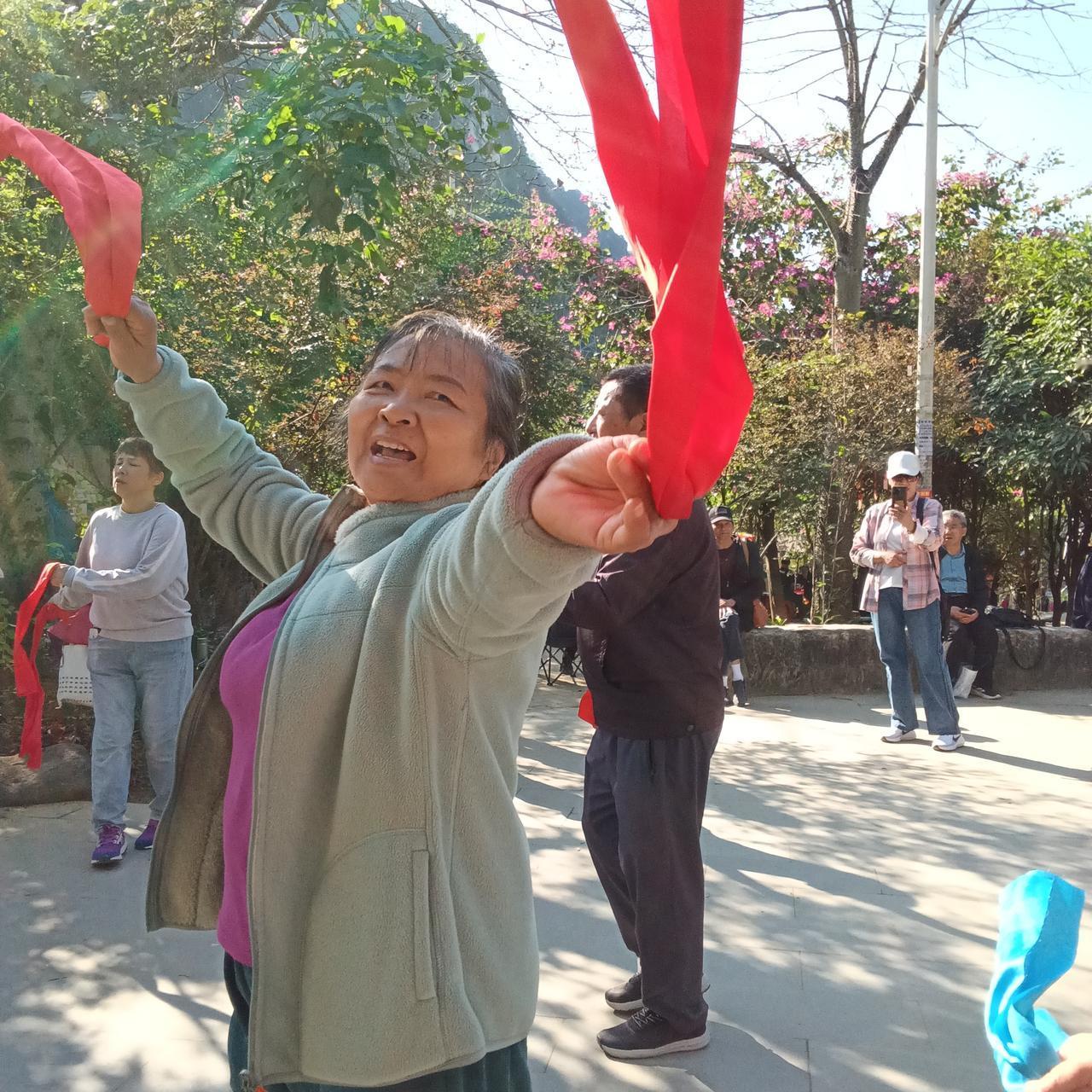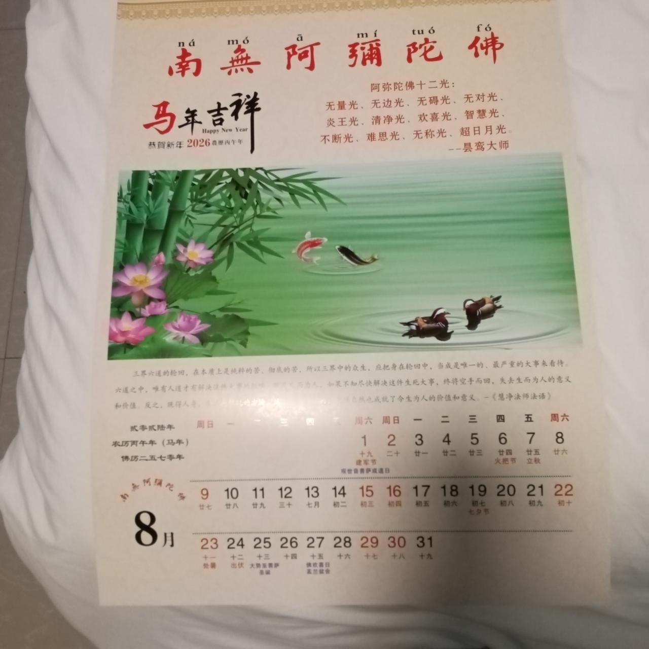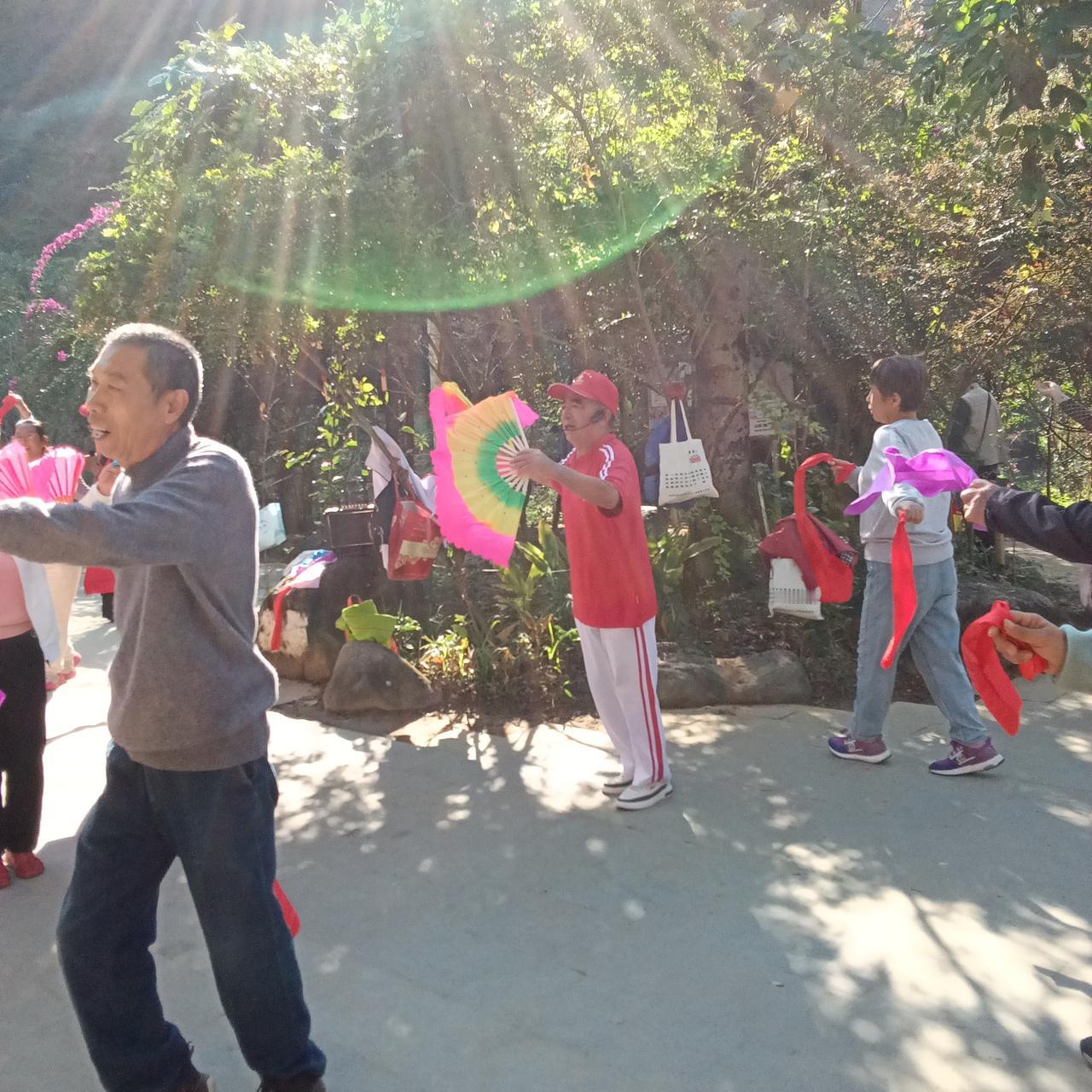 旅游和旅居 核心就是开心 这几天我们在巴马长寿村每天上午的生活就围绕大榕树广场锻炼身体。 今天是农历初一拍照的大部分人都是佛家信徒。在这里他们组织了超过150人参加的法式。 我虽然没有任何宗教信仰,但看着他们开心快乐和主动施舍与奉献的做法,还是忍不住融入其中。 现场有人布施每人可以获得一本带有阿弥陀佛字样的2026年挂历,我们也得了一份(见图片4)。 旅居生活丰富多彩同时也受益匪浅所有有信仰的人都懂得感恩懂得施舍懂得爱。