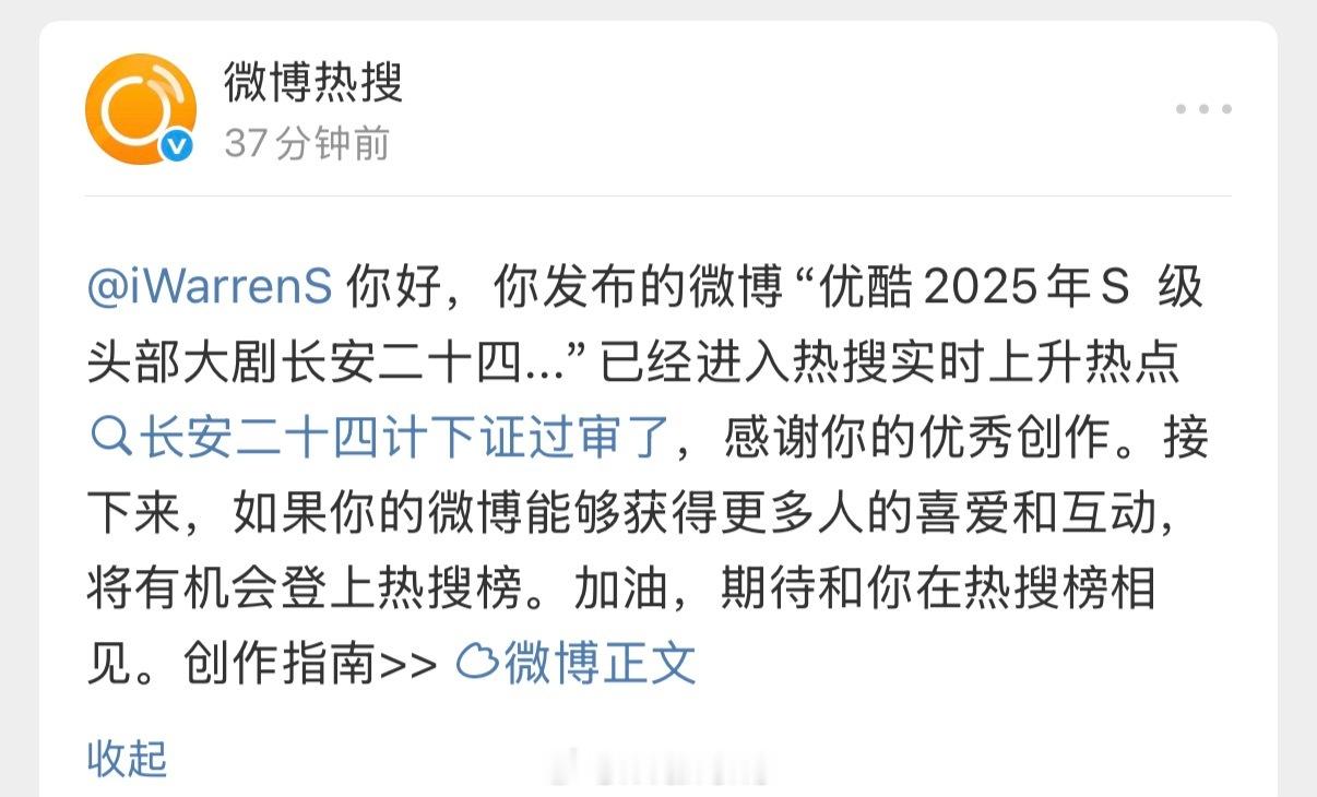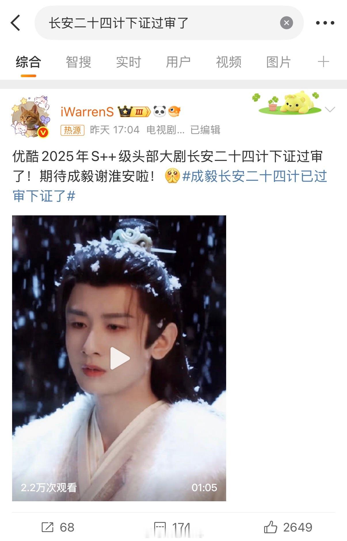 成毅长安二十四计下证过审了话题已经进入热搜实时上升热点了!感谢大家!